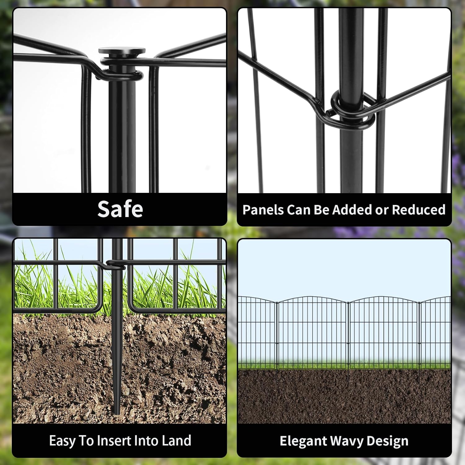 - MULTI-PURPOSE DECORATIVE FENCE:The dog fence for the yard can be used as a garden fence or animal barrier fence and can be set up around plants, trees, patio landscaping, vegetables, as a plant protection fence, garden landscape fence, flower bed fence and more. Can also be used as a pet fence such as dogs or rabbits to prevent small animals from escaping or entering and ruining your garden. Can also be used decoratively on driveways, walkways, backyard decorations and garden borders
