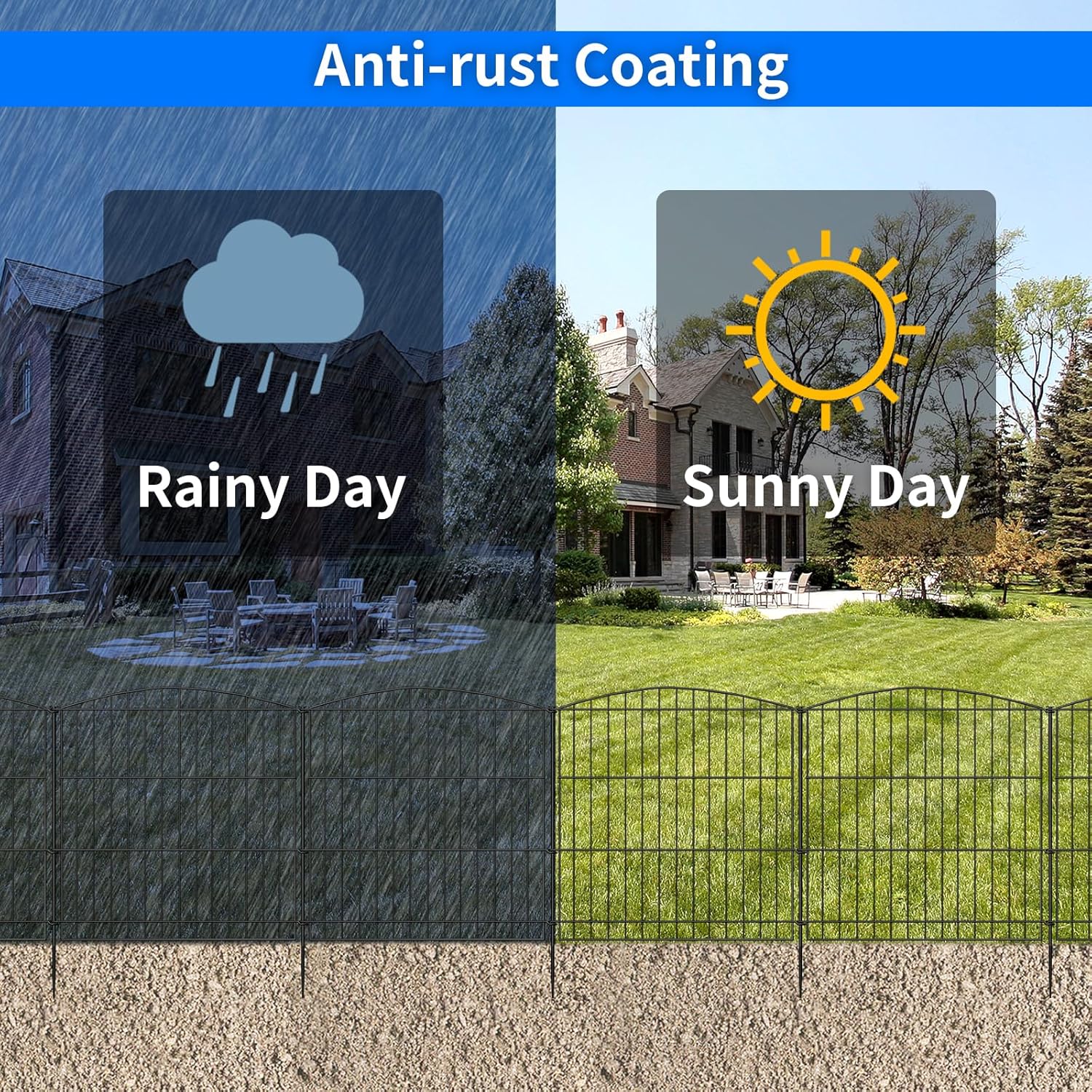 - EASY TO INSTALL:Instead of the traditional snap-on design, the garden fence comes with metal stakes. The metal stakes have a sharp bottom for easy insertion into the soil for increased stability and rigidity. You simply attach the metal stakes by inserting them into the eyelets between the two pieces of fence, tap the metal stakes directly, and you're done. Easily create a beautiful garden fence without complicated installation process