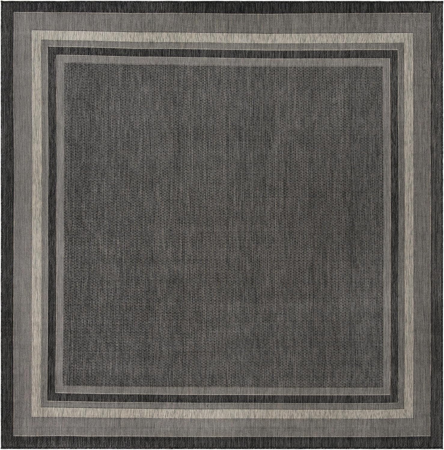 Unique Loom Outdoor Border Collection Area Rug - Soft Border (13' Square Black/Ivory)