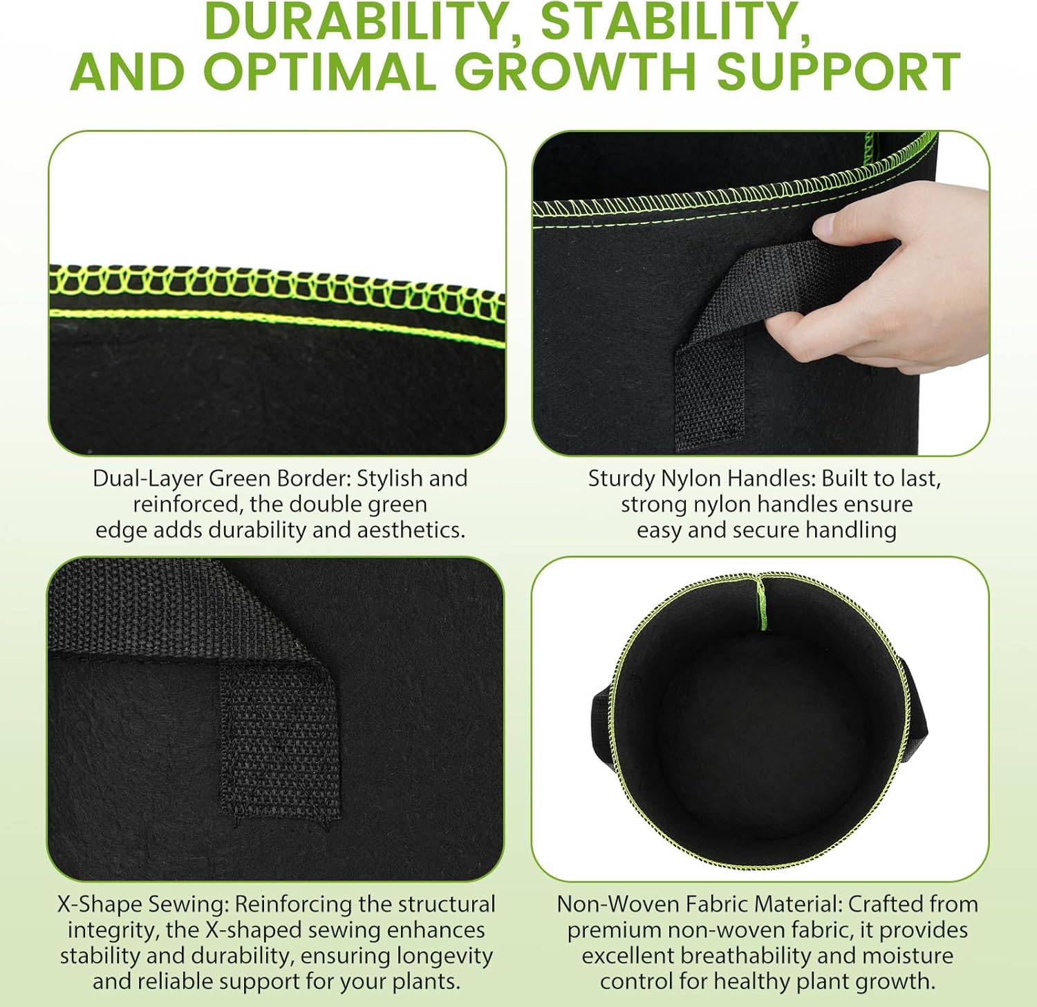 - Enhanced with a green line border, our 5 Gallon Pots for Plants not only enhance aesthetic appeal but also improve recognizability. This design reinforces the durability and stability of the product, extending its lifespan while conveying a sense of high quality and environmental consciousness.