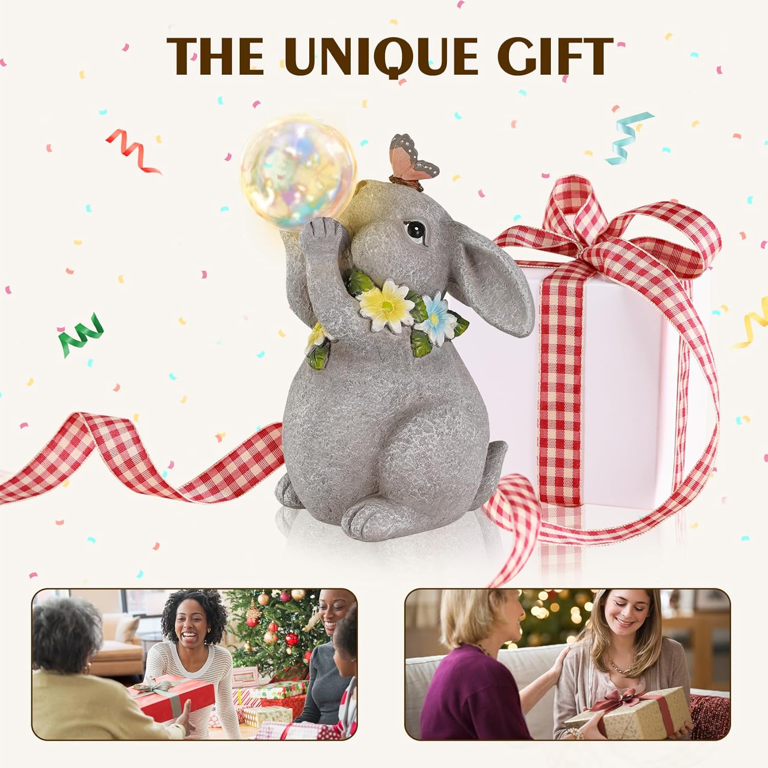 MININOVA Solar Garden Decor Lights Rabbit Statue with Bubble Ball Waterproof Decorations Cute Bunny Figurine for Outside Spring Yard Housewarming Mother Gifts for Women