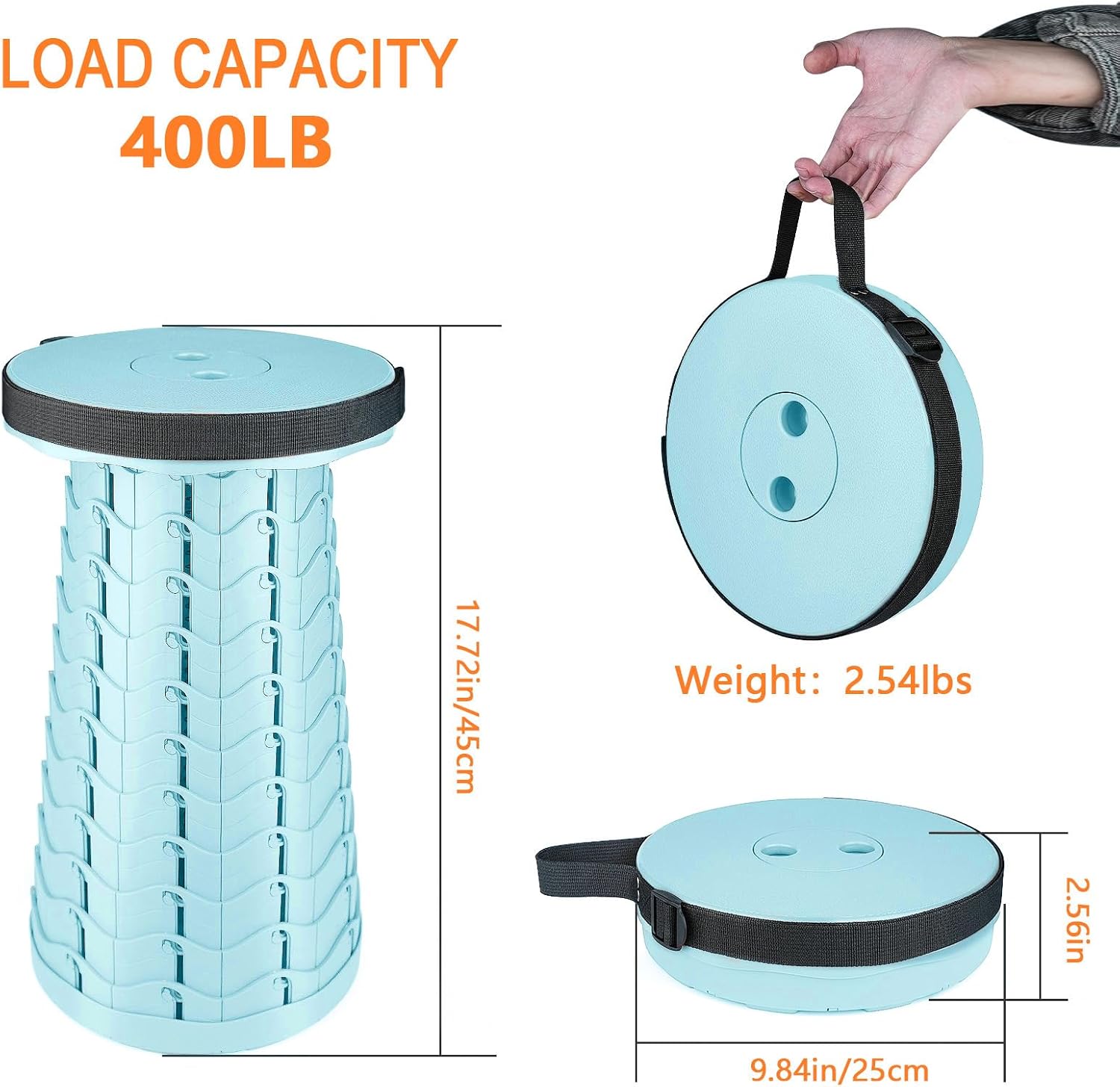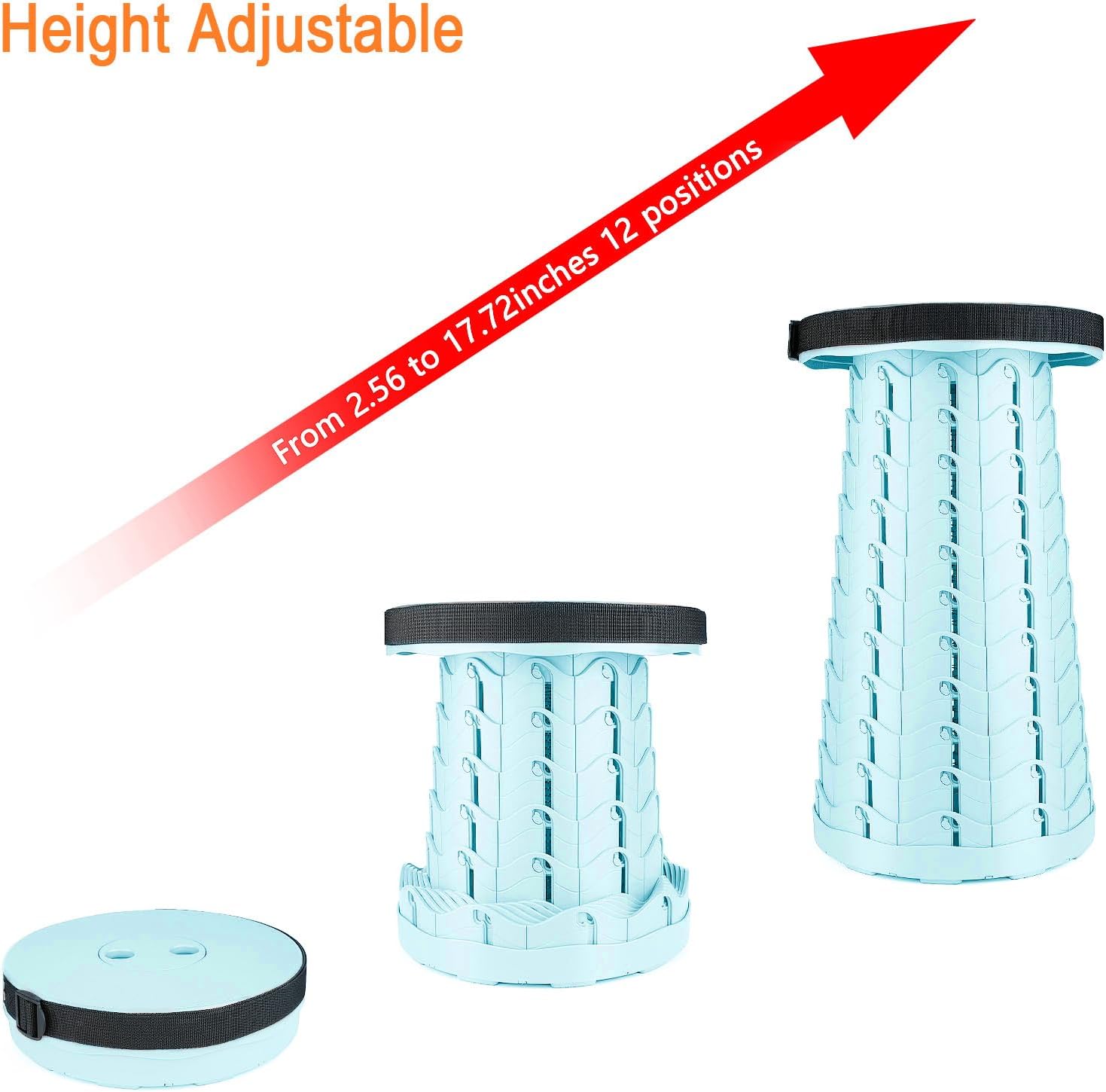 - PORTABLE & LIGHTWEIGHT: This telescopic stool is only 2.54 pounds with dimeter 9.84 inches/250mm. The adjustable strap makes the stool easy to carry in your hand or hanging on your shoulder. Perfect to use for camping, fishing, hiking, hunting, picnic, BBQ. Also can be used in living room, bedroom, bathroom etc