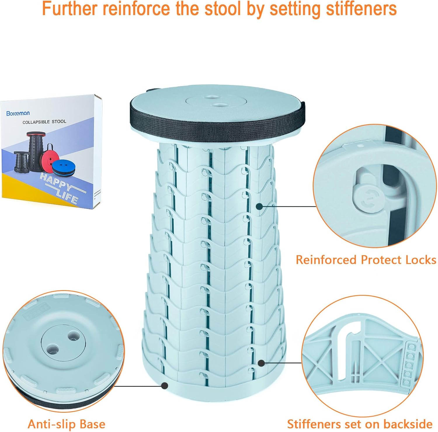 - SELF-OPEN PREVENTION: When this fold up stool is closed, snap joints designed on the caps come into play to prevent stool opening by itself. This make it more convenient and easier to bring it along for outdoor activities.