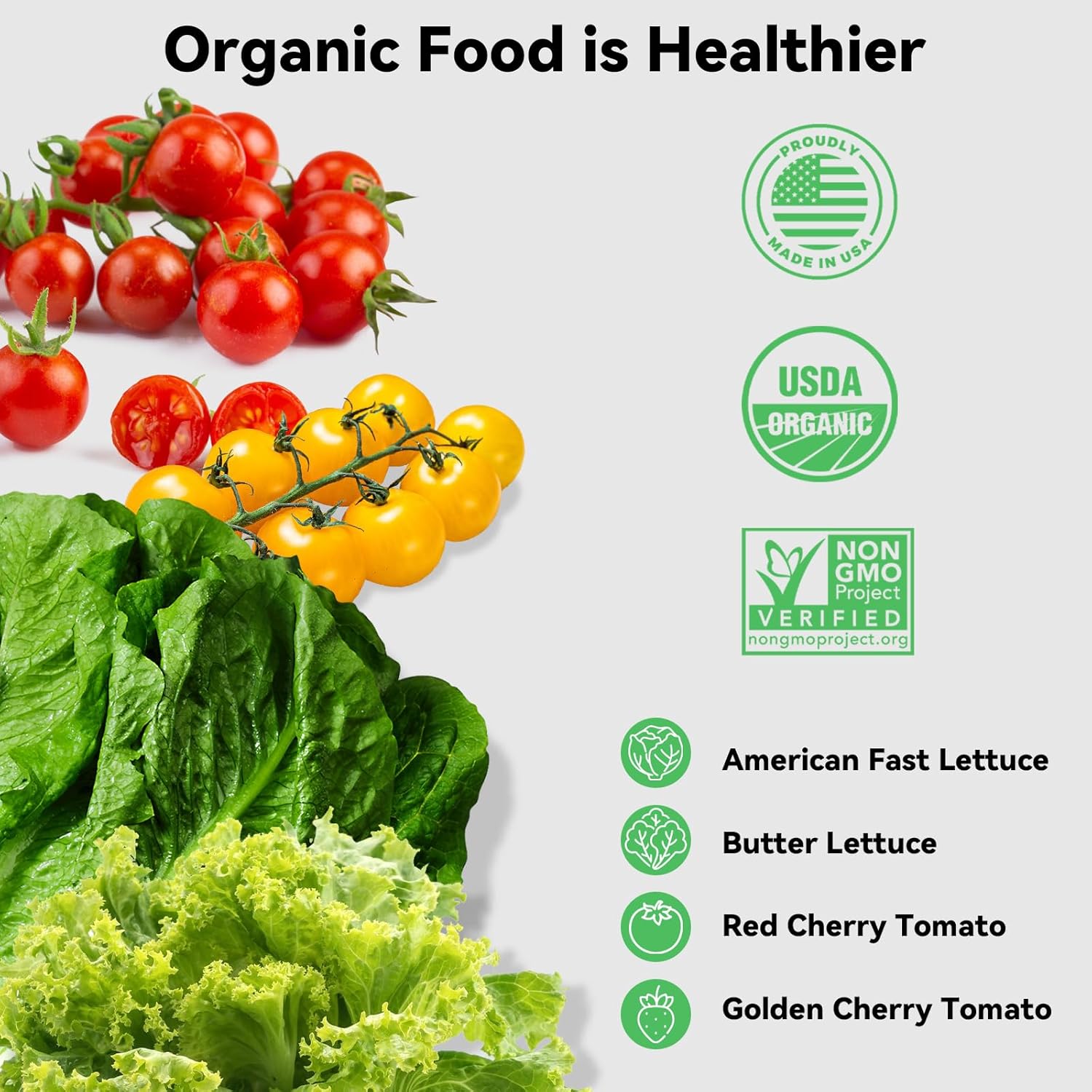 inbloom Organic Salad Green Seed Pod Kit for AeroGarden, Ahopegarden Hydroponics Growing System, Low-Calorie Food, 7-Pods (350+ Seeds, Include Fast and Butter Lettuce, Red and Golden Cherry Tomato)