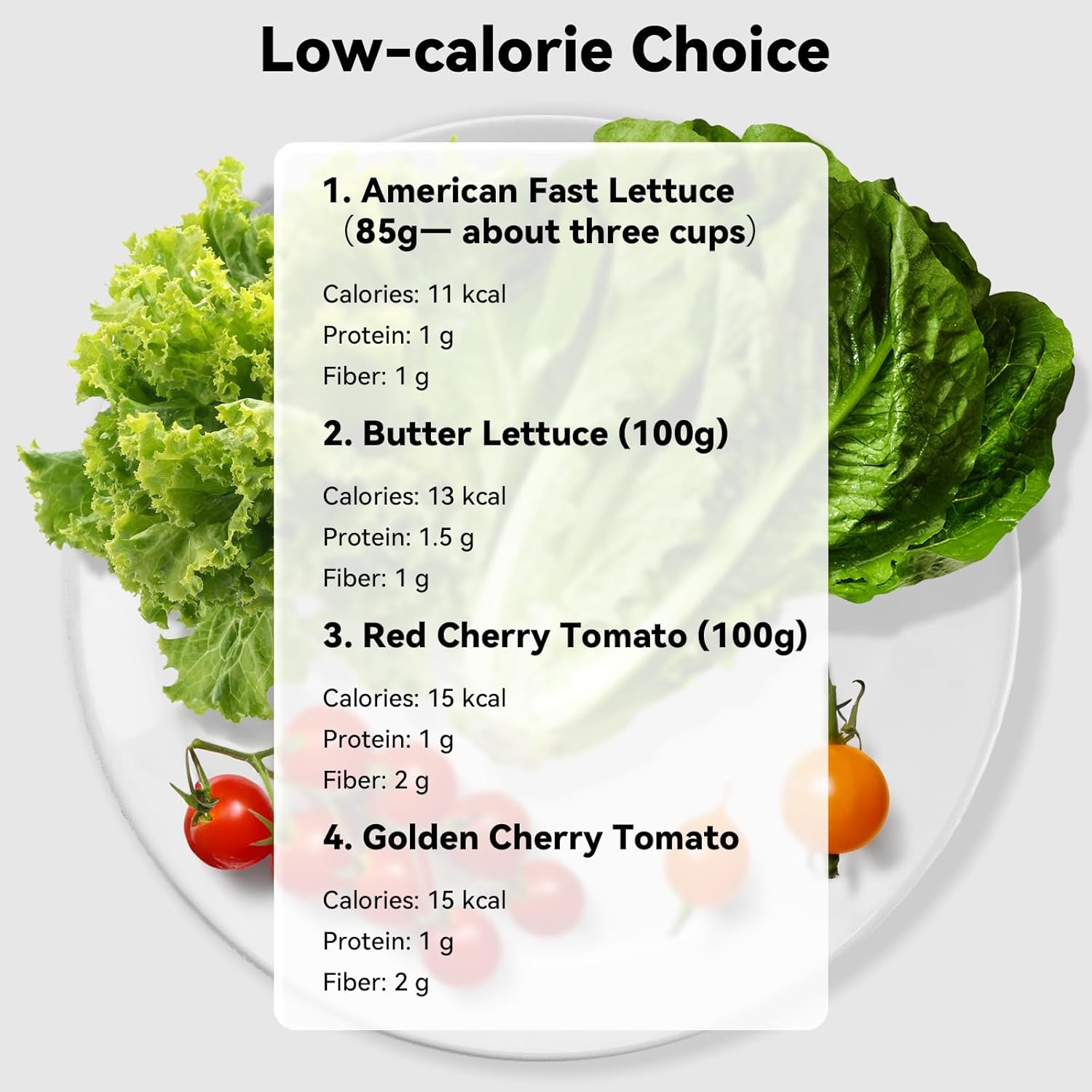 - Green Low-Calorie Delights: inbloom hydroponic salad herb seed pod kit includes American fast lettuce, butter lettuce, red cherry tomato, and golden cherry tomato. More seeds, more combinations. Growing your own low-calorie food allowing you to enjoy salads bursting with flavor
