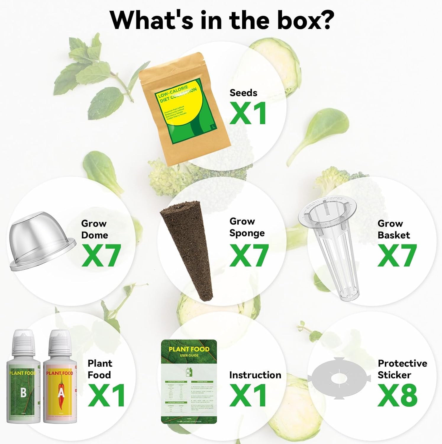 - Everything Your Need: inbloom salad seed kit not only includs four different seeds, but also includes 7 grow baskets, 7 sponges, 7 domes, 8 protective stickers, and A&B plant food. Whether you're a garden starter or an experienced grower, we are committed to making growing simple and fun, so that you can enjoy the fun and harvest of growing