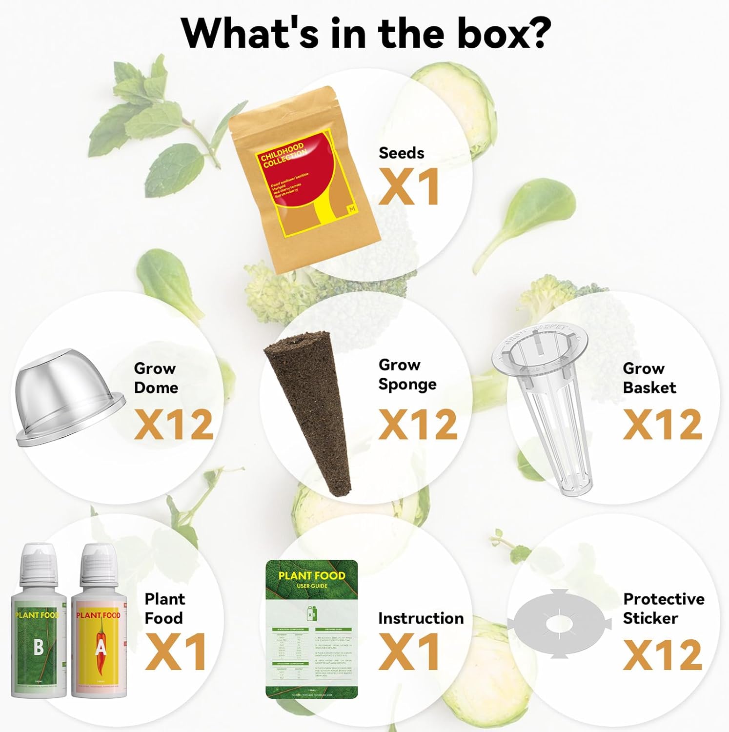- Everything Your Need: inbloom seed kit not only includs four different seeds, but also includes 12 grow baskets, 12 sponges, 12 domes,12 protective stickers, and A&B plant food. Whether you're a garden starter or an experienced grower, we are committed to making growing simple and fun, so that you can enjoy the fun and harvest of growing