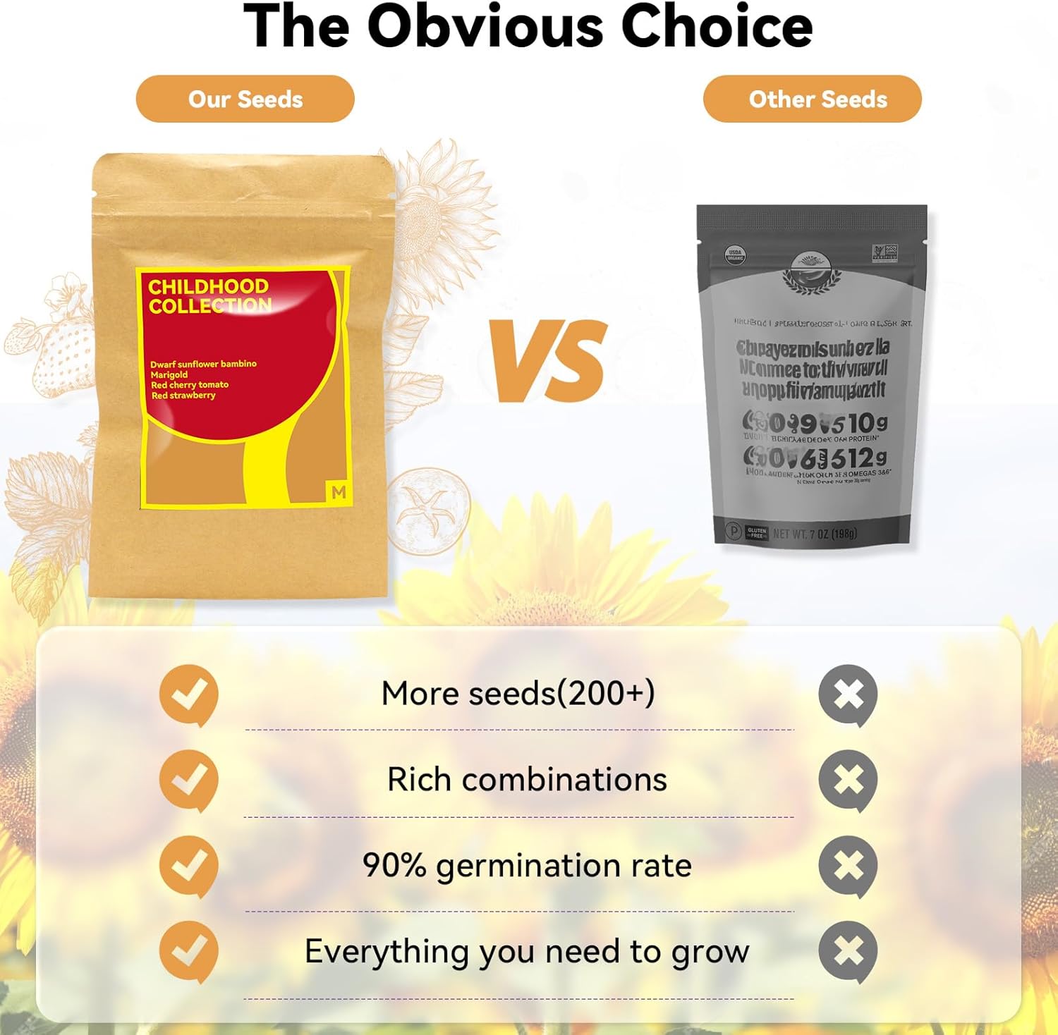 - Easy to Grow, High Germination:The germination rate of our seeds exceeds 90%. Perfect for garden starters and family growing alike. Teach the joys of planting with this seed kit which makes gardening easy and enjoyable