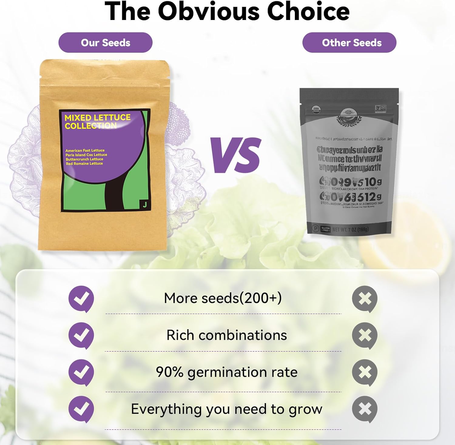 - Easy to Grow, High Germination: Our salad lettuce seed kits include easy-to-use growing guides. Additionally, our high quality lettuce seeds exceed 90% germination rate. Whether you're a starter or an experienced grower, we are committed to making growing lettuce simple and fun, so that you can enjoy the fun and harvest of growing