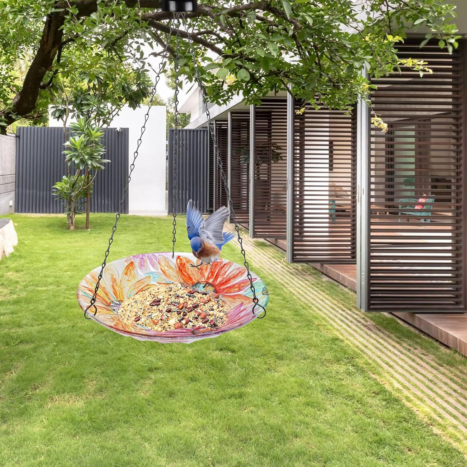 VCUTEKA Hanging Bird Bath, Glass Bird Baths for Outdoors Birdfeeder with 21 inch Rust-Proof Chain for Garden Yard Decor, Flower