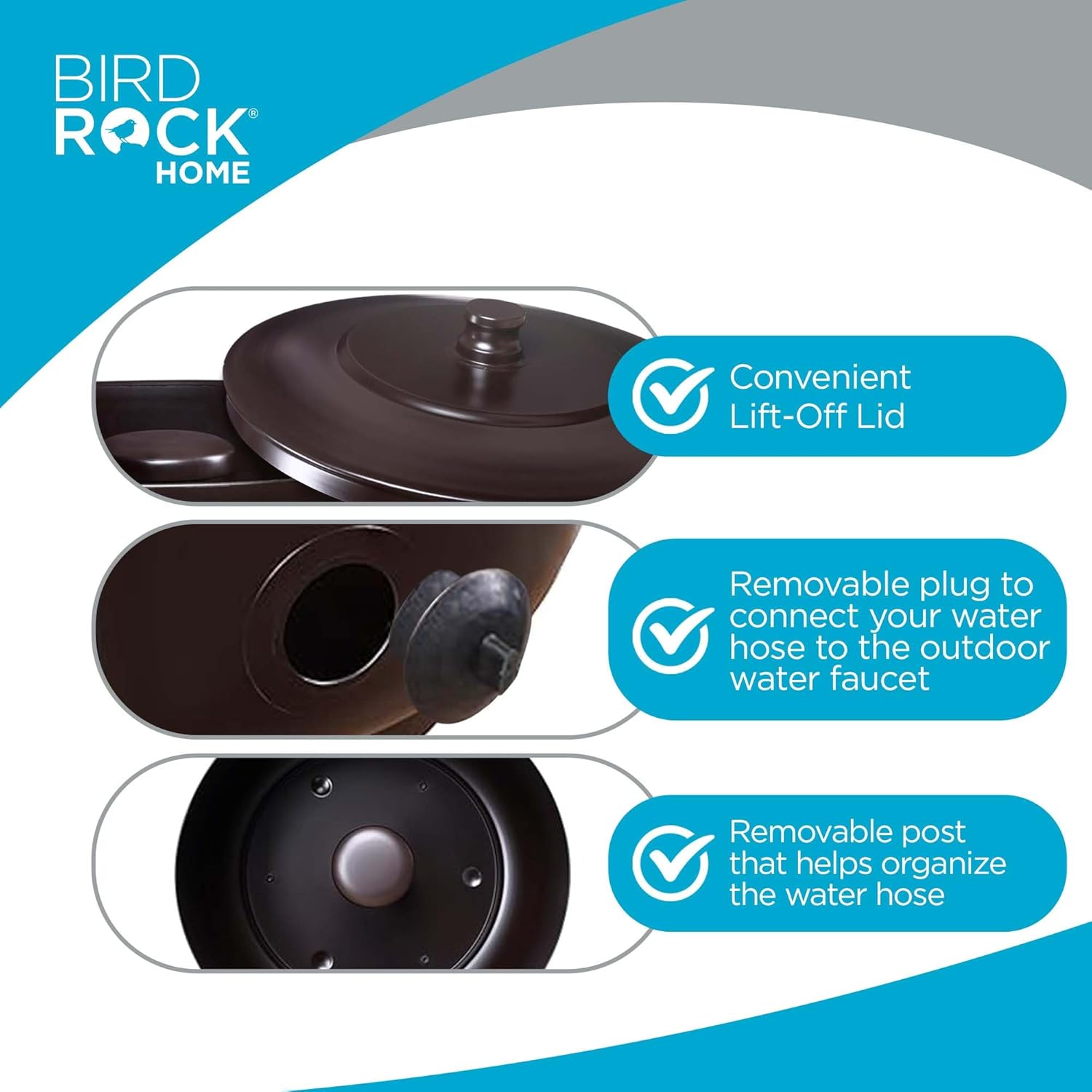 - HIDEAWAY FUNCTIONALITY: With its hideaway design, the BIRDROCK HOME Pot discreetly stores your hose, keeping your outdoor space clutter-free. The included lid helps protect your hose from the weather, while the compact base makes it an ideal fit for small patios or gardens.