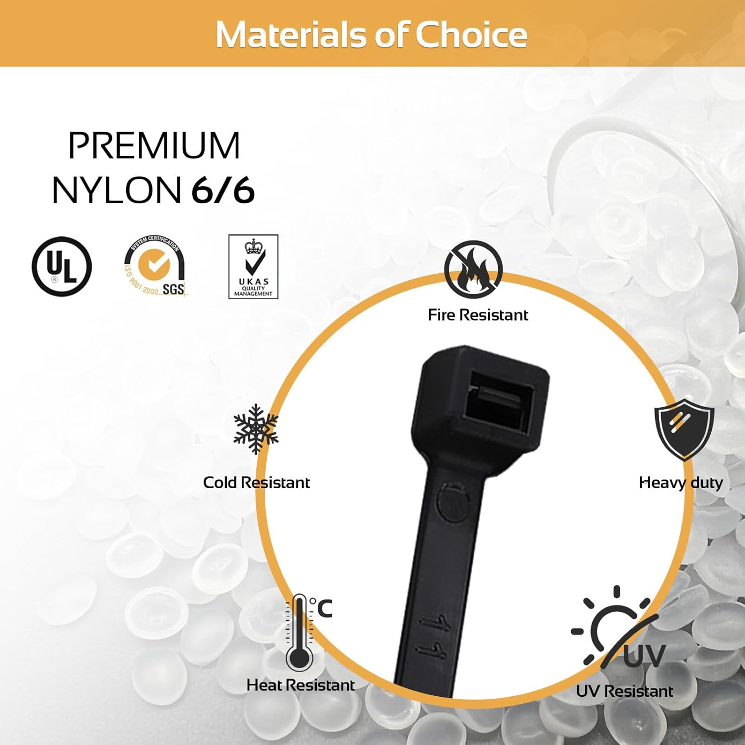 - Durable Material: These cable ties are made of high-quality nylon material, which is known for its strength and durability. They can withstand extreme temperatures, making them ideal for use in harsh environments.