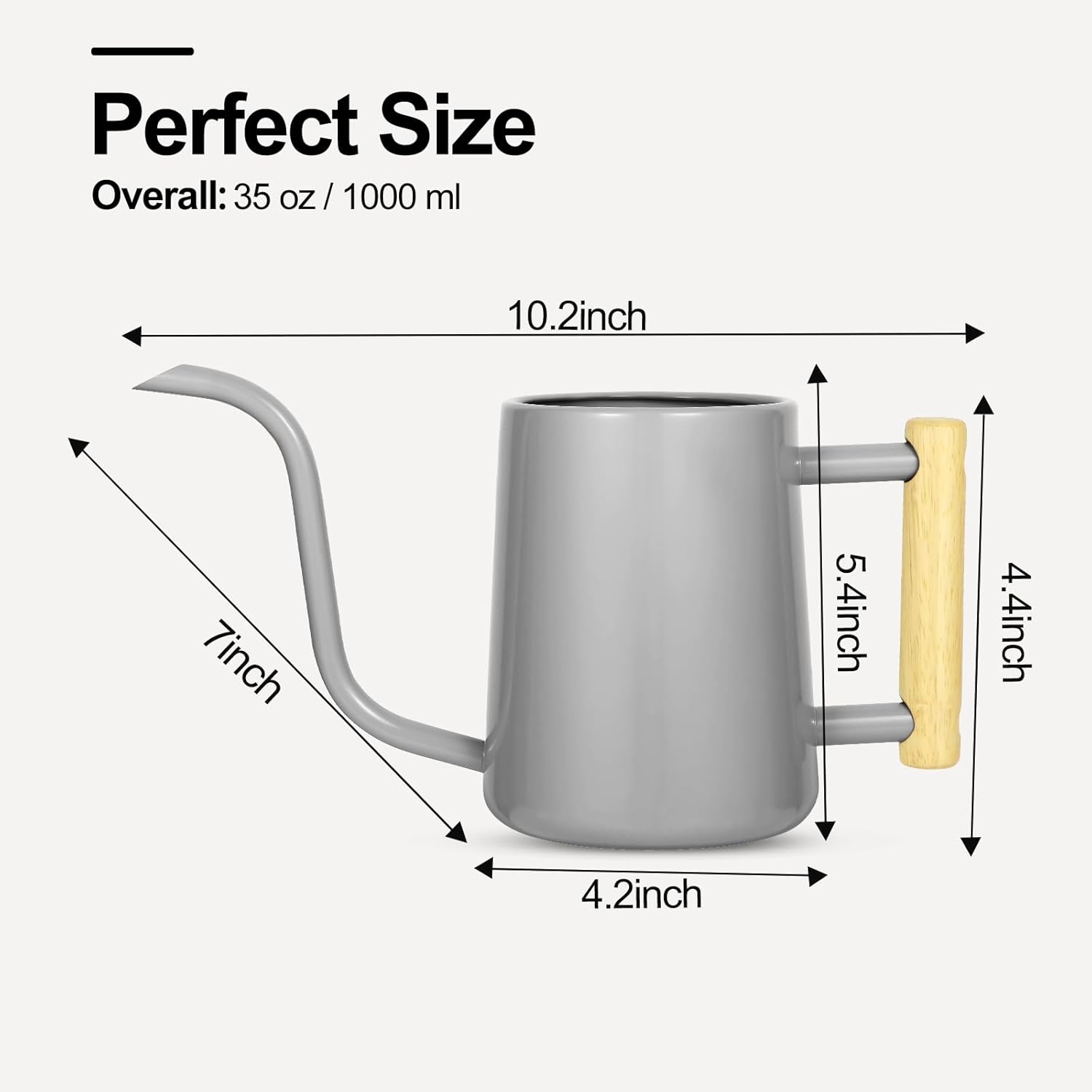 Watering Can Indoor Plants, 35 oz/1000 ml Metal Stainless Steel Watering Can Pot with Long Spout for Indoor House Plants Bonsai Outdoor Garden Flower Decorative (Gray)