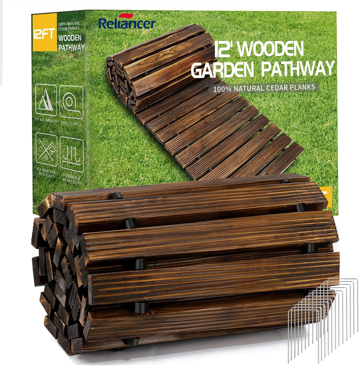 - 12 Ground Stakes:In order to fix more firmly,12 ground stakes are provided in the set to further anchor the wooden walking path to the ground to prevent it from sliding!For greater safety,each widened wood plank features anti-slip patterns on its surface to enhance anti-slip performance, providing more comfortable and stable walking experience to you