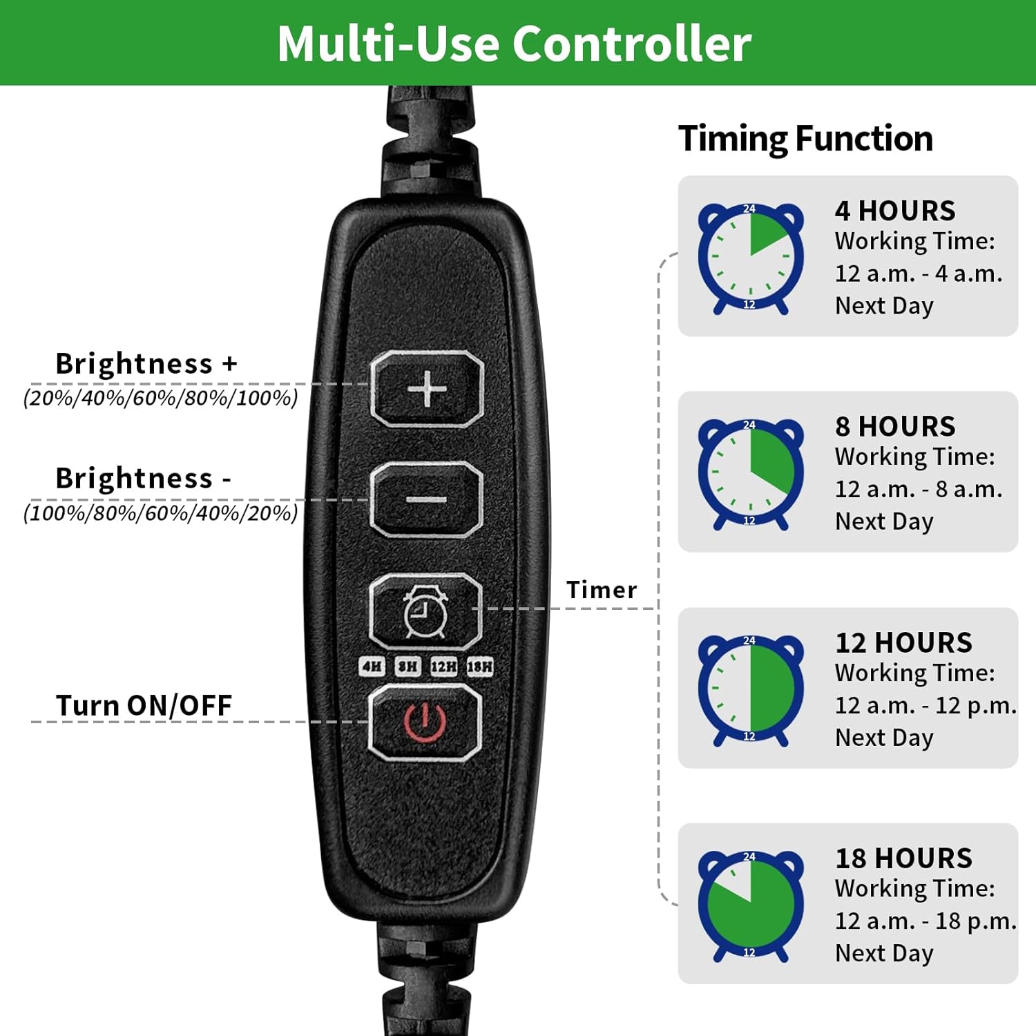 - 4-Level Timing Settings and 5-Level Brightness: Our seed starting trays offer customizable lighting schedules with options for 4, 8, 12, and 18-hour cycles, ensuring that your plants receive the appropriate amount of light at different stages of their growth. Additionally, the 5-level brightness control allows you to adjust the light intensity to meet specific plant light requirements.