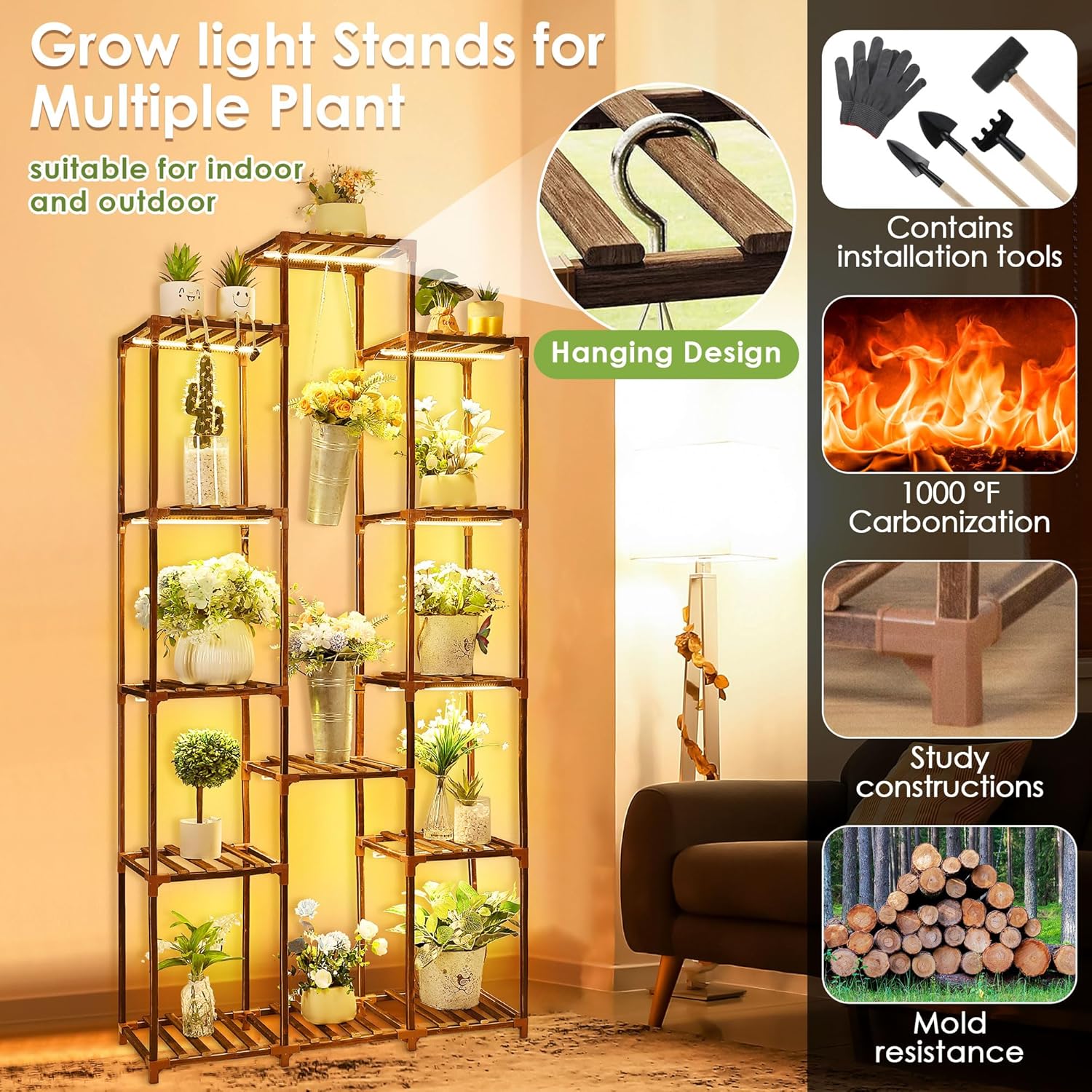 - 【13-Tier, 69" Elevated Plant Stand】 This 69" plant stand indoor features 13 pot stands. Our planter stands for indoor plants space-saving design with small footprint, making full use of vertical space in unused corner areas . Plant Stand with Grow Lights the staggered design offers enough space for different kinds the even gap makes them get enough air and sunlight.