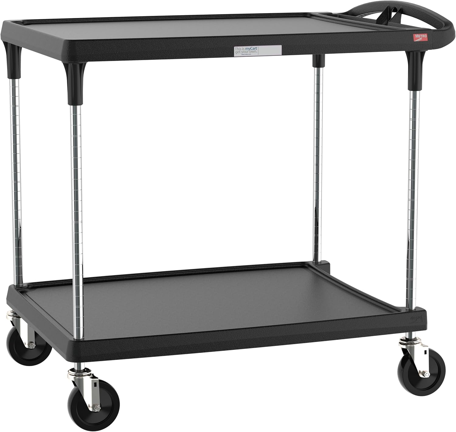 Metro myCart Plus Utility Cart - Choose-Your-Height Adjustable Heavy Duty Rolling Cart for Home, Commercial and Industrial Use - 2-Shelf, 400 lbs Capacity - 27.7" W x 40.25" L x 36.8-40.8" H - Black