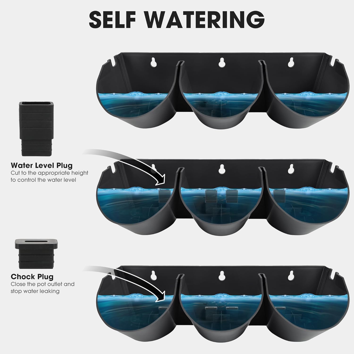- STACKED VERTICAL DESIGN: The water filtration system from top to bottom can effectively save and retain moisture; Includes 12x water filter panels used to prevent leaves and solid impurities from blocking the outlet of the pots, 48x water level plug used to control the water level and 48x chock plugs to close the pot outlet and stop water leaking