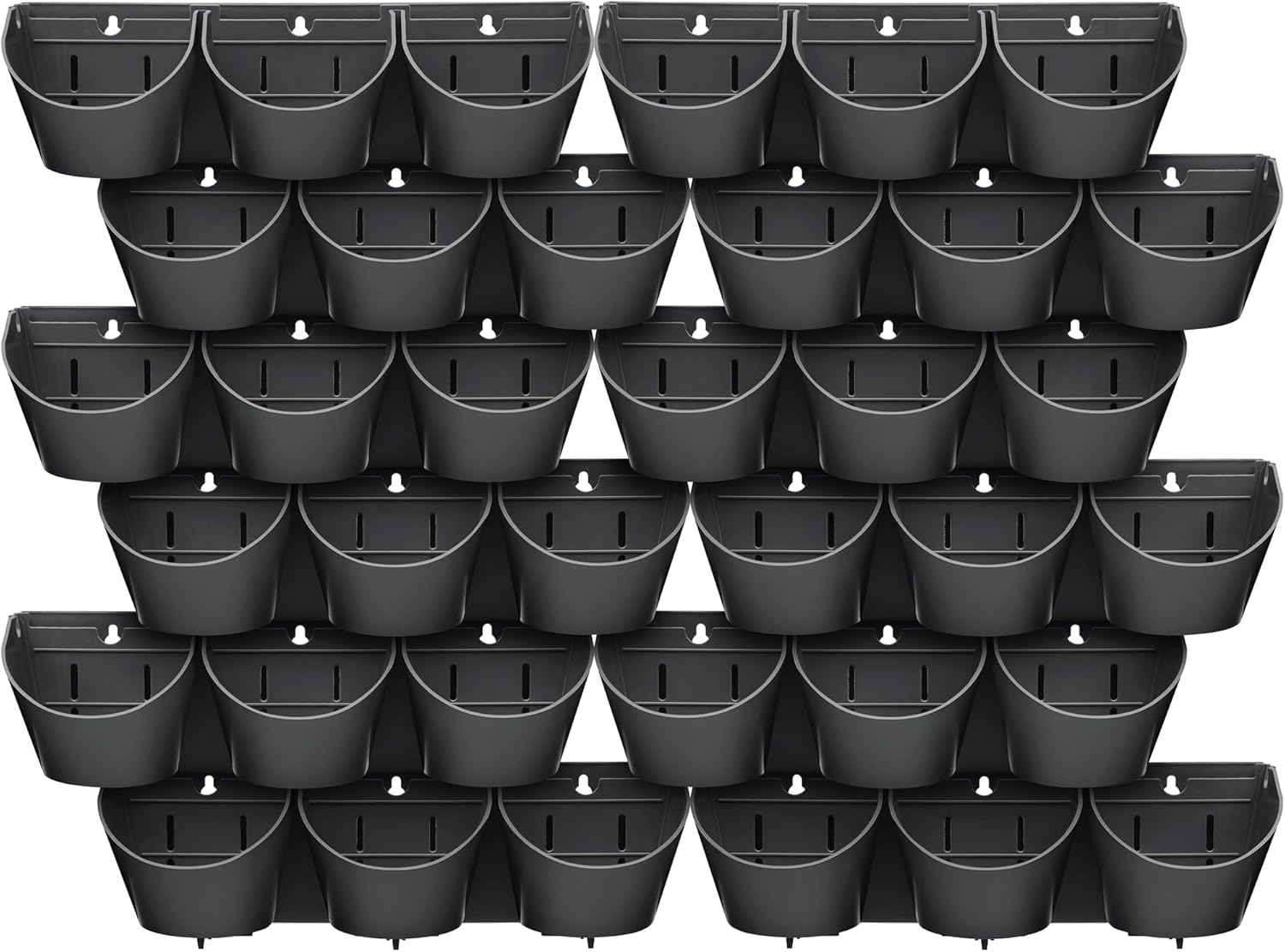 - INCLUDES 12 MODULAR WALL PLANTERS: We’ve included 12 3-pocket planters within our wall mounted hanging planter for you to create layers of potted plants for your vertical garden; Use a few wall hanging planter in one area or use them all; You can even add more layers to your vertical garden by purchasing additional compatible vertical garden pots; 12x 3-pocket planters make up 6.4ft², total of 36 plants required
