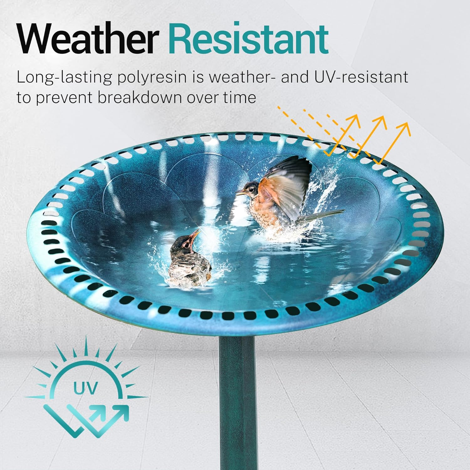 - Weather Resistant- the bird bath is made of a strong resin material that withstands cold or hot weather and won't break, crack, or bend, so you can use it with confidence