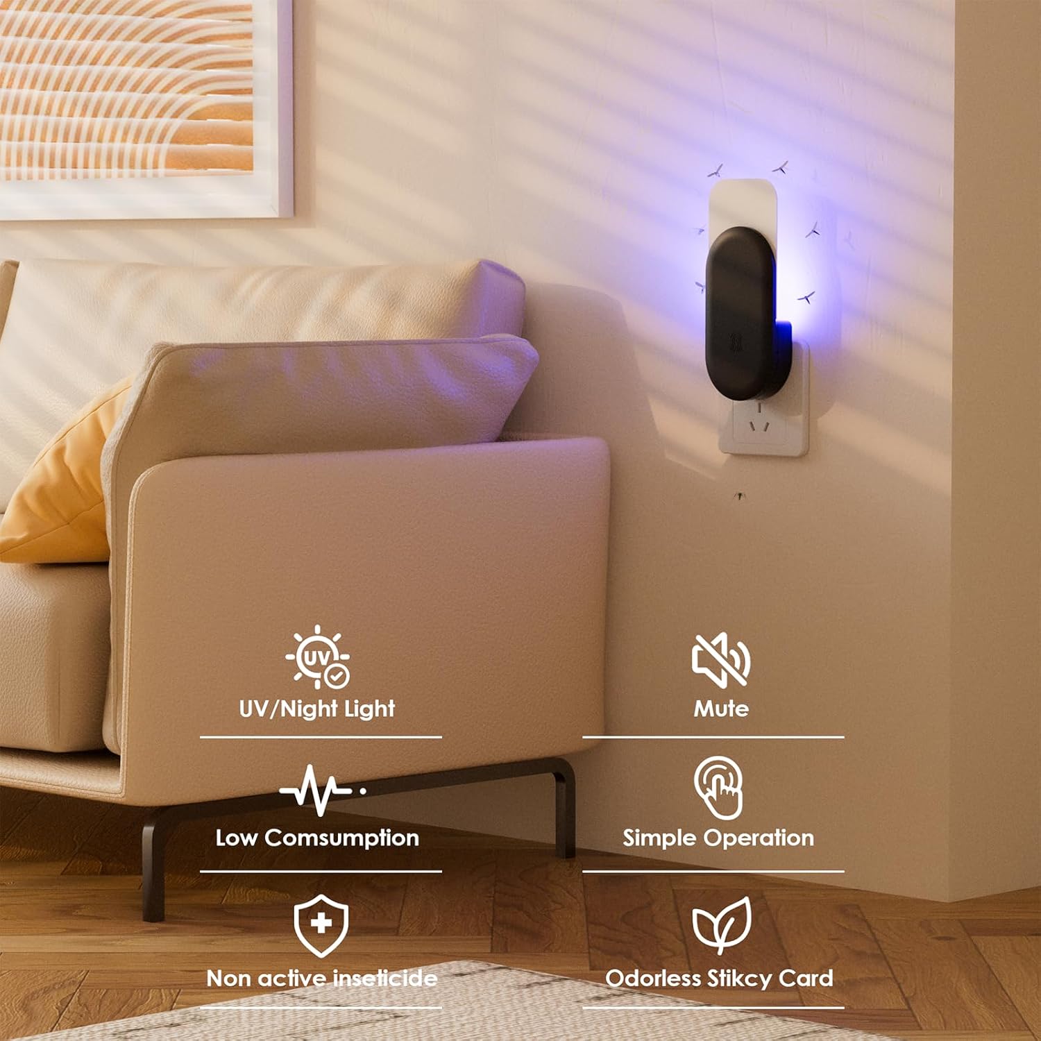 Flying Insect Trap, 2 in 1 Indoor Plug-in Fruit Fly Trap, 1 Trap Black and 6Glue Cards, Fruit Fly Traps for Gnat, Moth, Mosquito, Suitable for Every Part of The Home