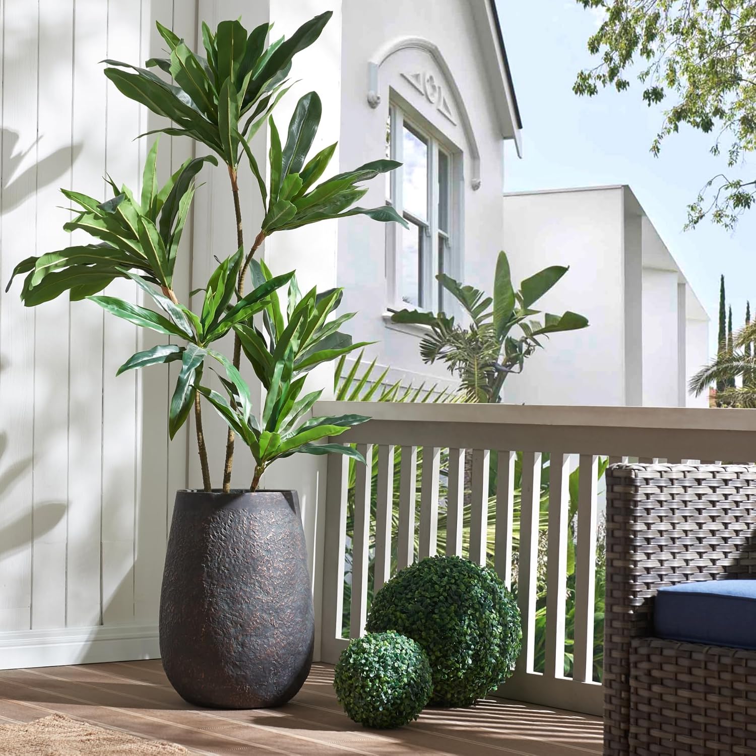 20" H Weathered Concrete Tall Planter, Black Large Outdoor Indoor Decorative Flower Pot with Drainage Hole, Modern Round Style for Home, Garden, Patio, Courtyard, Bronze Rust with Green Tone