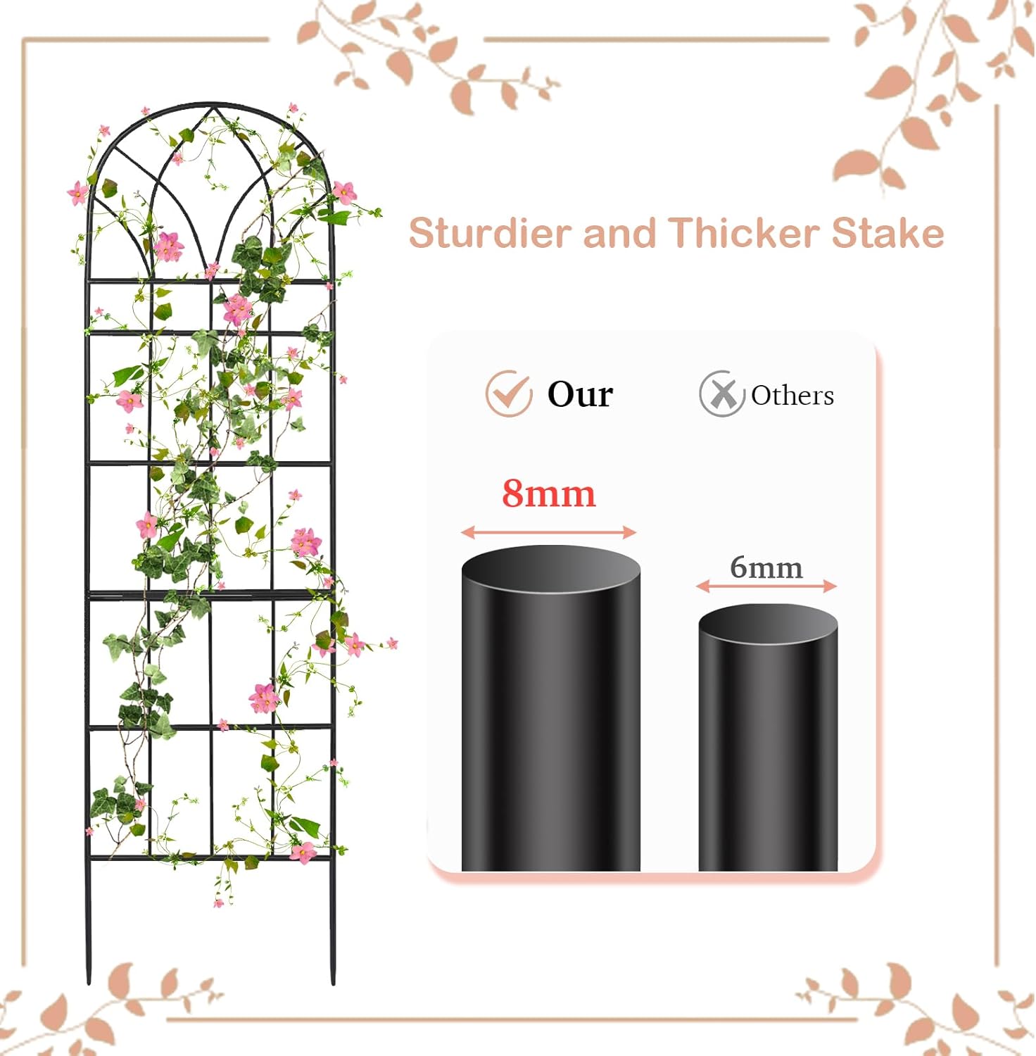 - Premium & Sturdy Material: Crafted with rust proof black powder coated finish, this trellis for climbing plants outdoor providing an extra layer of protection against rusting and weather elements like rain, UV, and snow, making it could be used for both outdoor and indoor decoration. Features an architectural structure and solid 8mm pipe support for your lovely plants, this metal garden trellises is sturdy and has long-lasting durability
