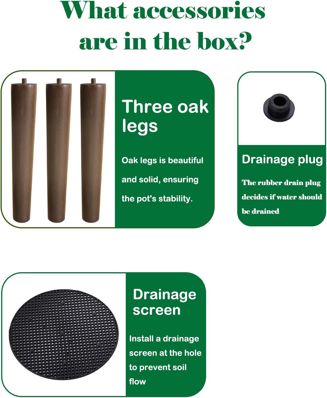 - Size: The upright flower pot has an outer diameter of 12 inches and a height of 11 inches. The total height of the flower pot with oak legs is 20.5 inches. The inner diameter is 11.3 inches. Provide plants with enough growing space, suitable for both small and large plants.