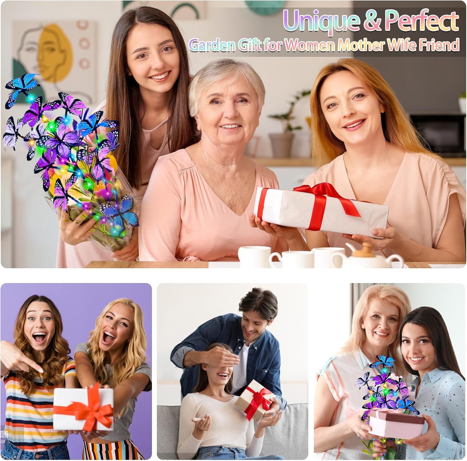 Solar Garden Lights Outdoor, Waterproof 4 Pack Solar Butterfly Lights with 60 LED 12 Butterfly Colorful Lighting for Garden Yard Lawn Outdoor Decor, Gift for Mom Women Mother's Day