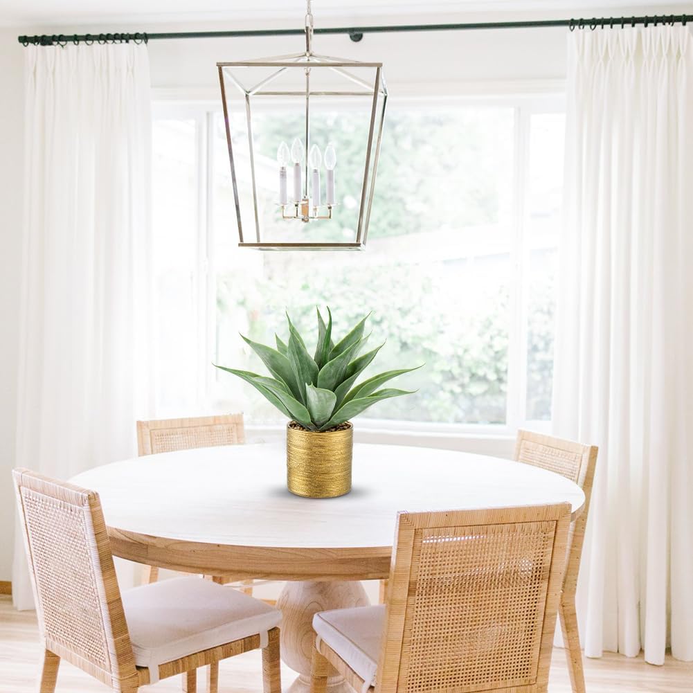 - [High-quality Artificial Agave Plant]-12.2" faux aloe vera leaves are elegantly arranged in a sturdy, shiny gold-plated brushed pot and surrounded by natural stone pebbles. The overall height of faux potted plant is about 13". Luxurious pot: 4.3" W x 4 .5" H.