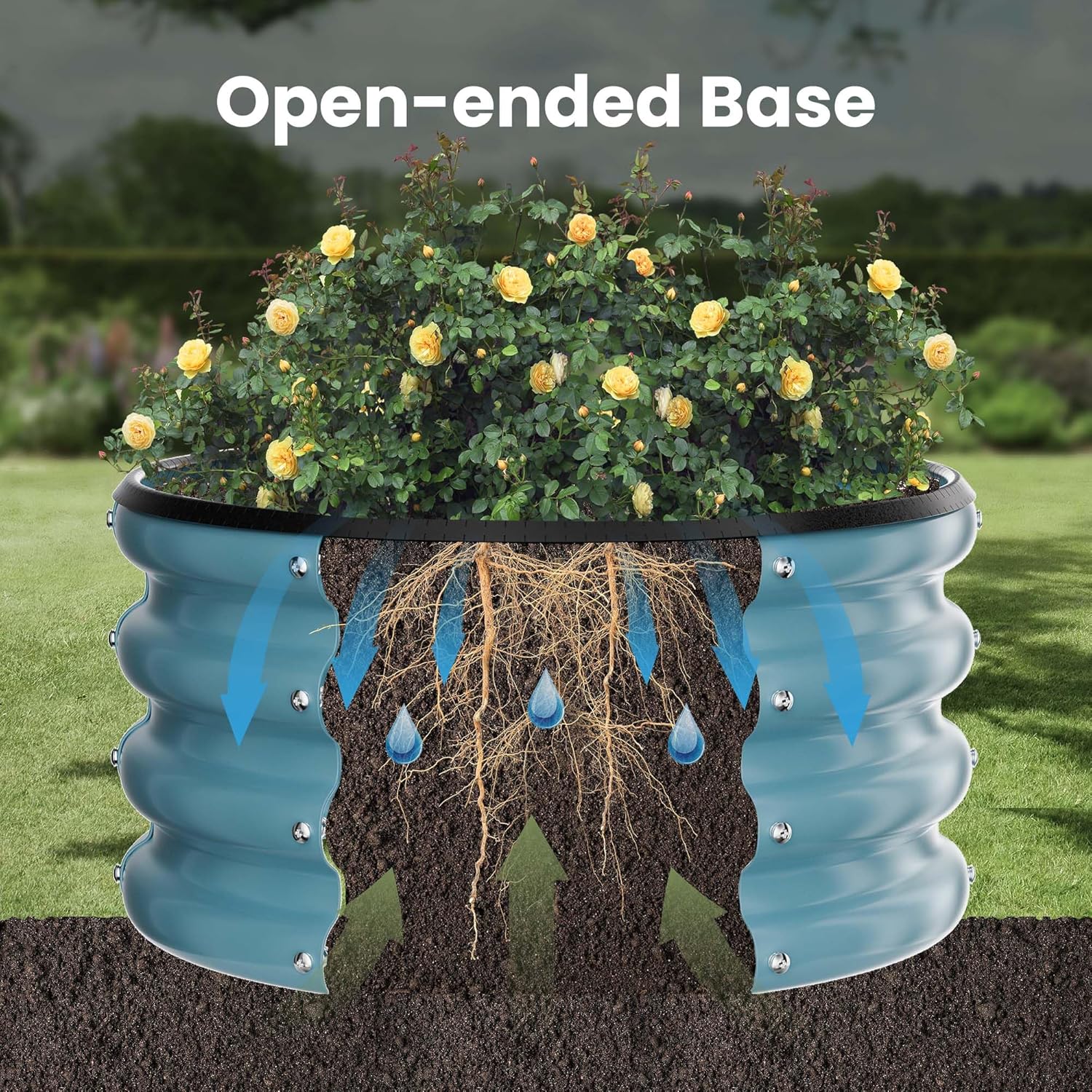 ZXZYHFTY Round Galvanized Raised Garden Bed kit, Blue Outdoor Garden Raised Planter Box, Round Large Metal Raised Garden Beds for Vegetable 2 * 2 * 1ft 1 Pack