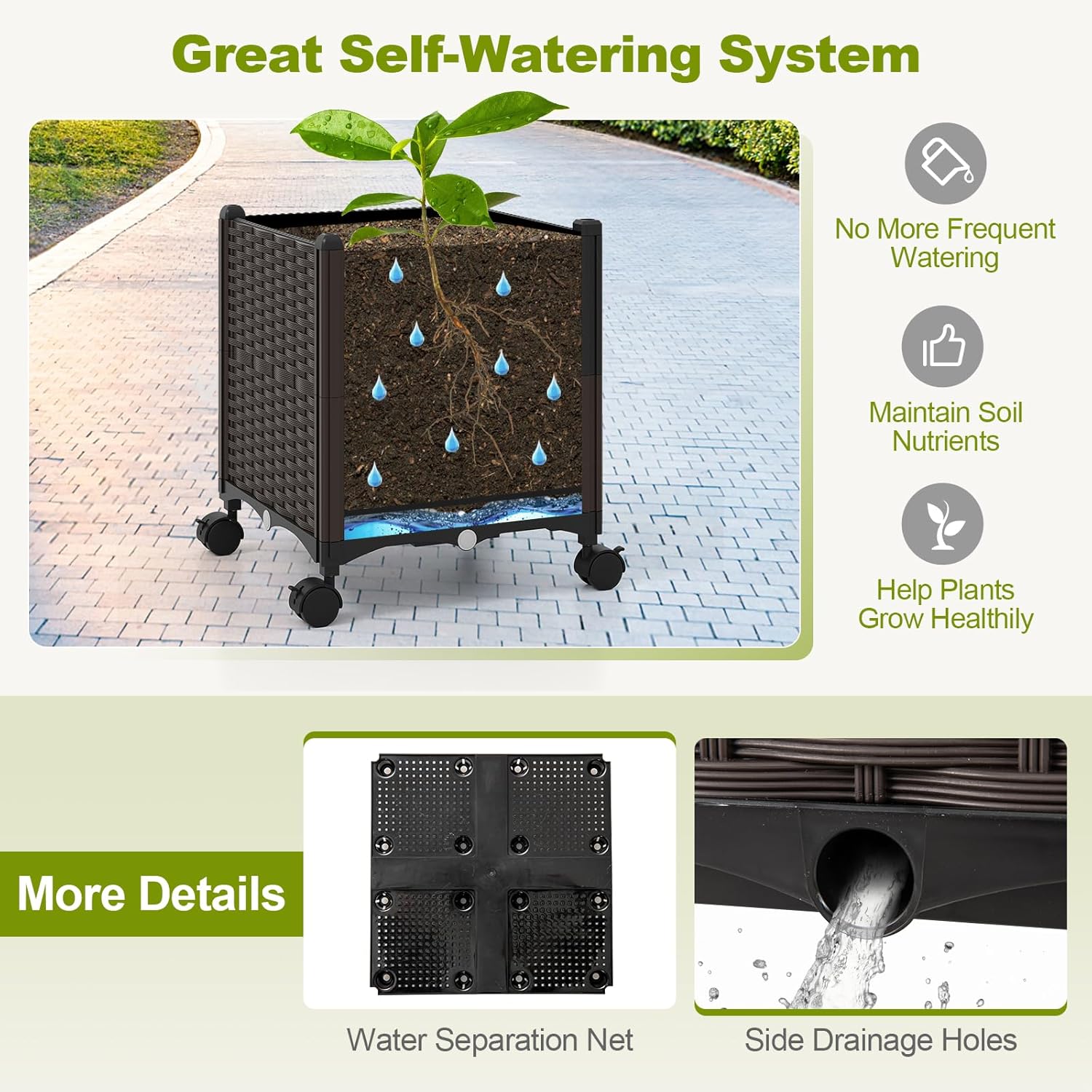 - Self-Watering System: Upgrade your gardening experience with the garden pergola, having a self-watering design to avoid frequent watering, maintain soil nutrients and help plants grow healthily. Also, it has ample drainage holes for more convenience.