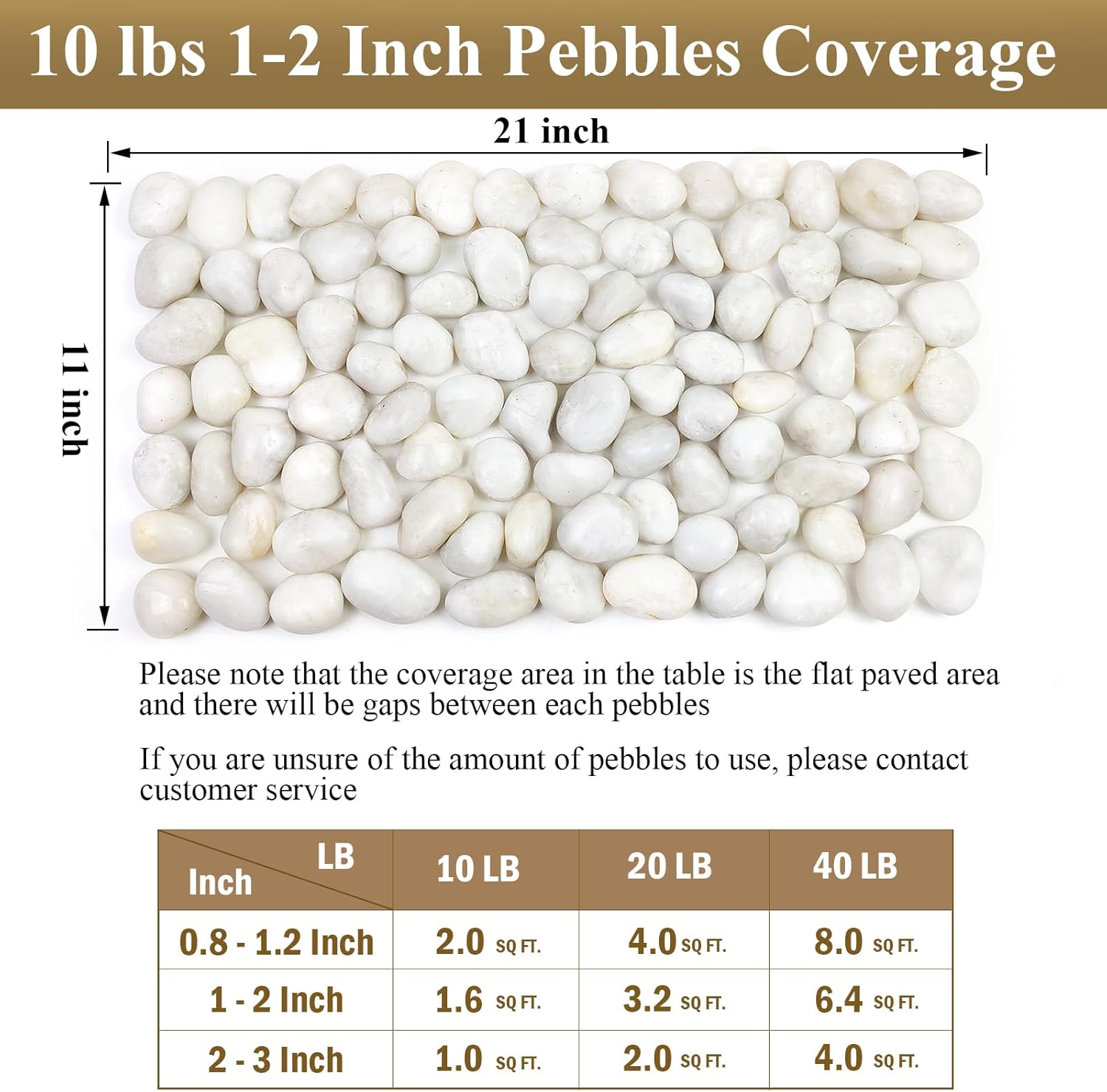 - 【10 lbs White River Rocks】White river rock is about 1-2 inch. Due to machine screening, some larger pebbles will exceed 2 inch in length. Decorative polished rocks are not pure white, there are a few grey pebbles and yellow pebbles in it