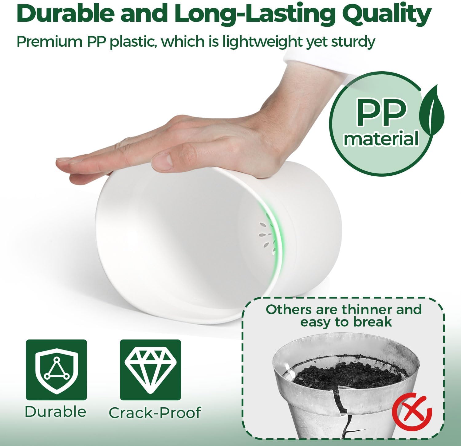 - 🌱【Durable & Lightweight Plastic Pots】T4U 6 inch flower pots Made from premium plastic, these plastic pots are lightweight yet tough enough to withstand drops and outdoor elements, offering long-lasting support for your plants year-round