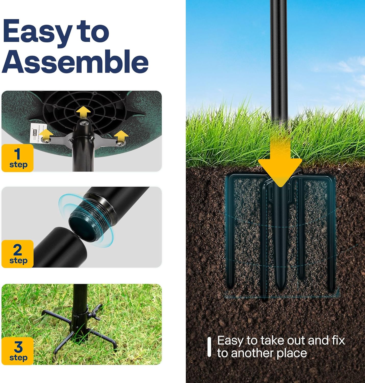 - DURABLE CONSTRUCTION: The VIVOHOME birdbath has a sturdy 5-forked metal base with a black-coated finish that keeps it upright and resistant to bending or breaking; The birdbath tray is made of high-quality PP material and is covered with a green coating, making it wear and crack-resistant and weatherproof, so there is no need to worry about rain or sun damage; The solar-powered fountain and four spray nozzles are designed with PP material, which gives it a longer service life