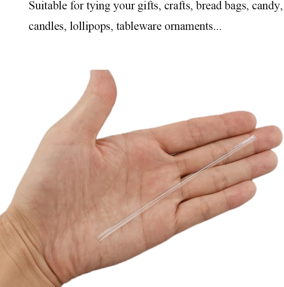 - Perfect for businesses and events seeking an eco-conscious choice:each pack offers 300 recyclable, clear twist ties, measuring 4 inches (10cm) in length and 4mm in width. Their transparency ensures your packaging's visual appeal is preserved while supporting sustainability.