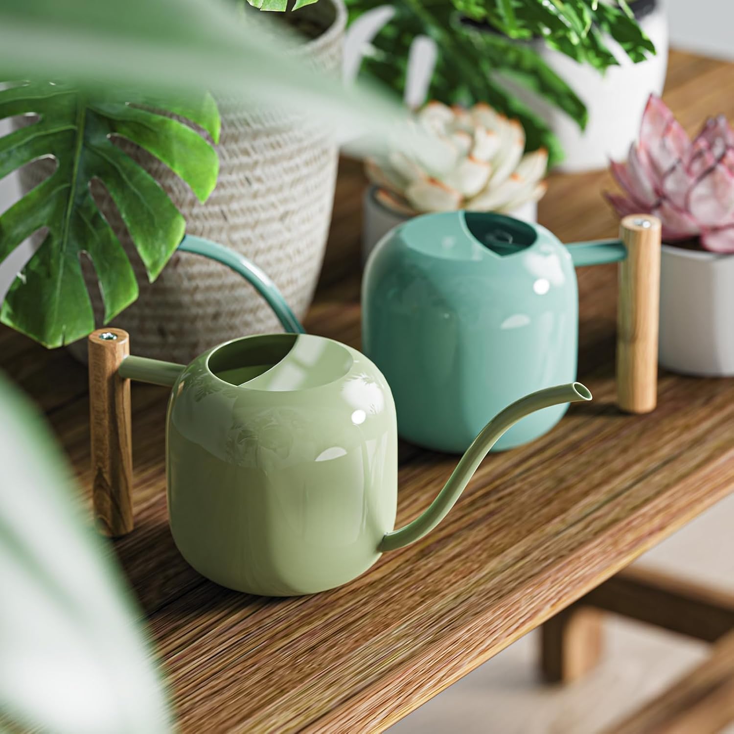 - 【IDEAL CAPACITY】Our Mint Green small metal watering can is a great indoor watering can with a capacity of 1200 ml/41 oz. You can water all your indoor plants at once which allows you to water multiple small bonsai without frequent refilling.