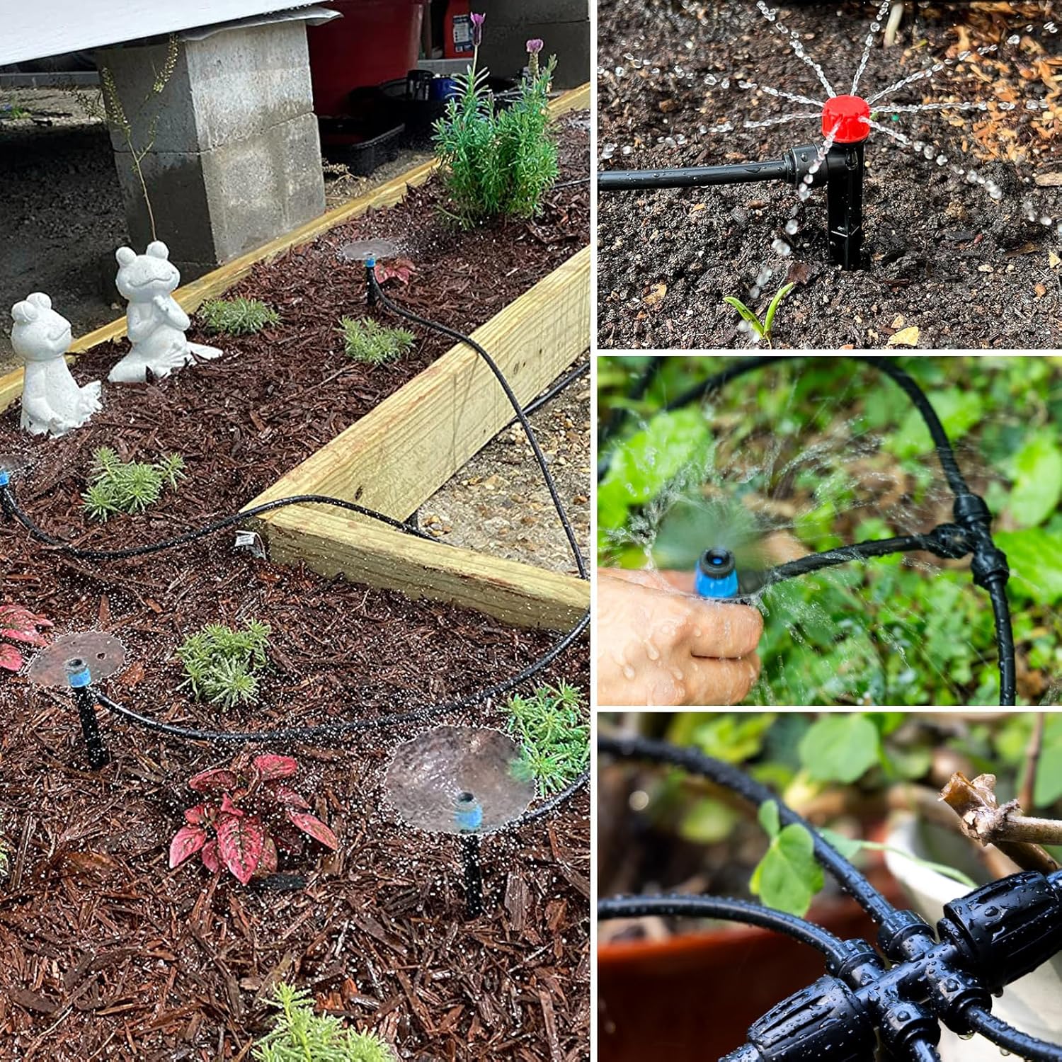 100FT 1/4 inch New Quick-Connect Drip Irrigation Kit Distribution Hose Tubing for Garden Irrigation System (Includes 2 Pcs 6-Way Connector, 5 Pcs 1/4" Tee and 10 Pcs End Plugs)