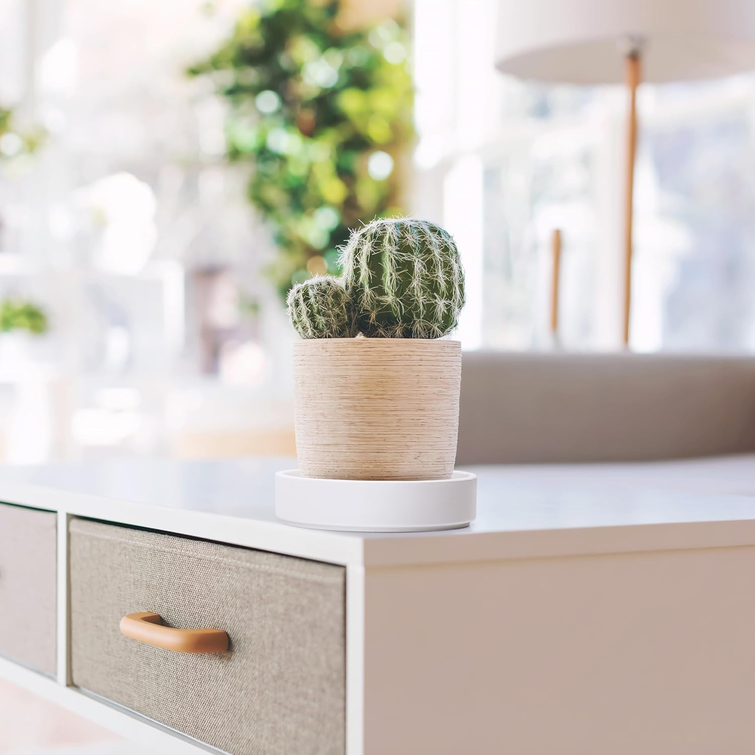 - Enhanced Water Management: Features a deeper saucer design that allows for more efficient watering techniques such as bottom watering, while lifting planters to channel water away, keeping areas dry and clean.