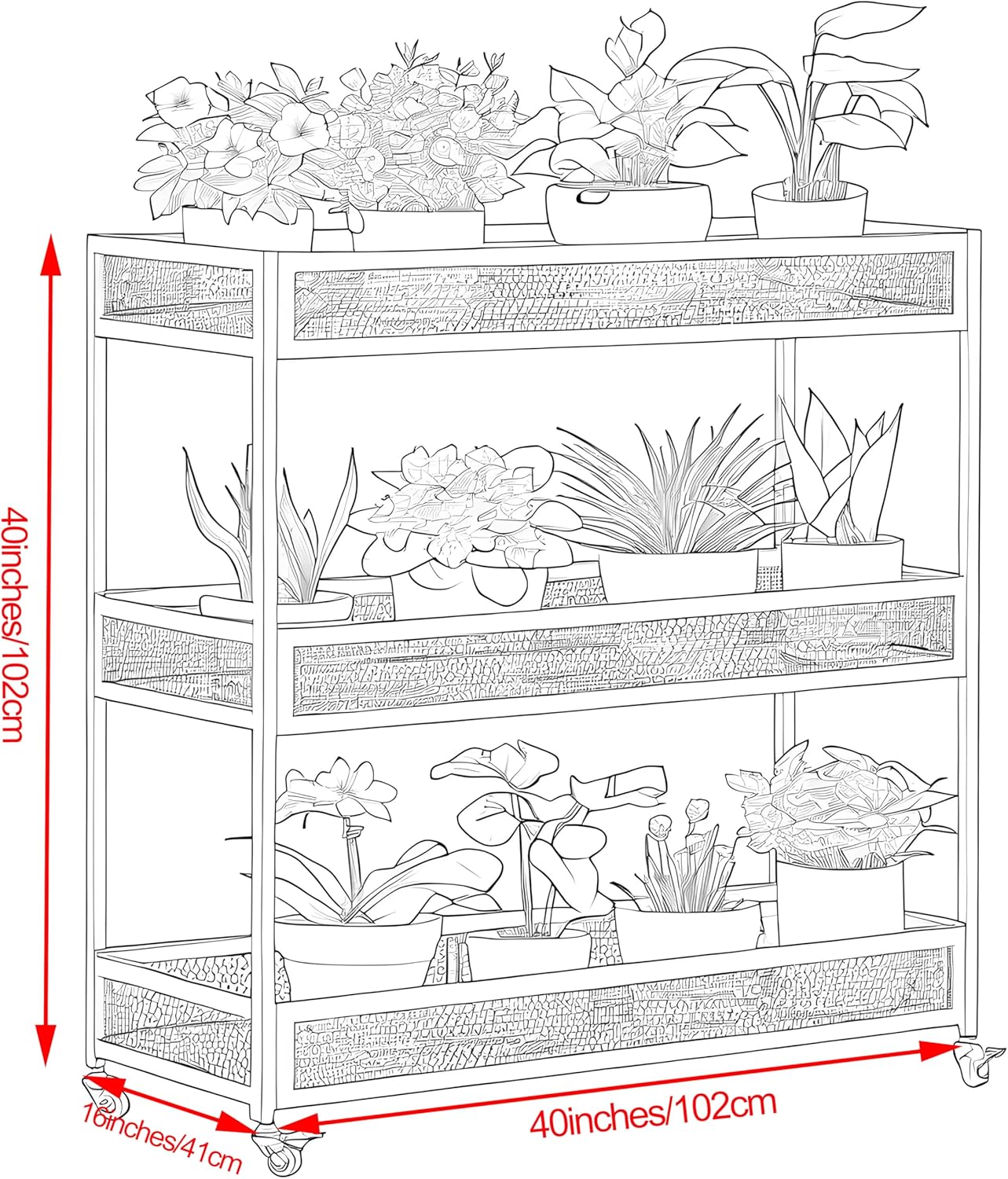 Outdoor Heavy-Duty 3-Tier Moving Garden Cart Sturdy Metal Plant Stand with High-Capacity Load & Rotating Wheels