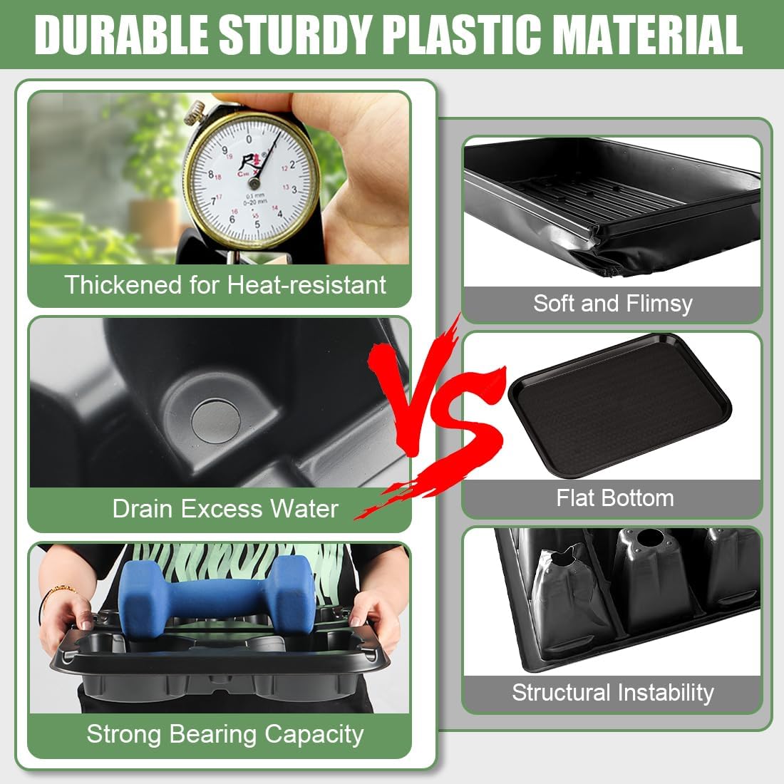 - Trays for Carrying 5-6 Inch Pots: Plant pot trays have been carefully designed, each cell can actually hold a pot perfectly. The sturdy base keeps plants upright and secure to make sure that plant pot is firm and does not wobble. The edges of growing pot trays are smooth and rounded to prevent scratching pots or hands.