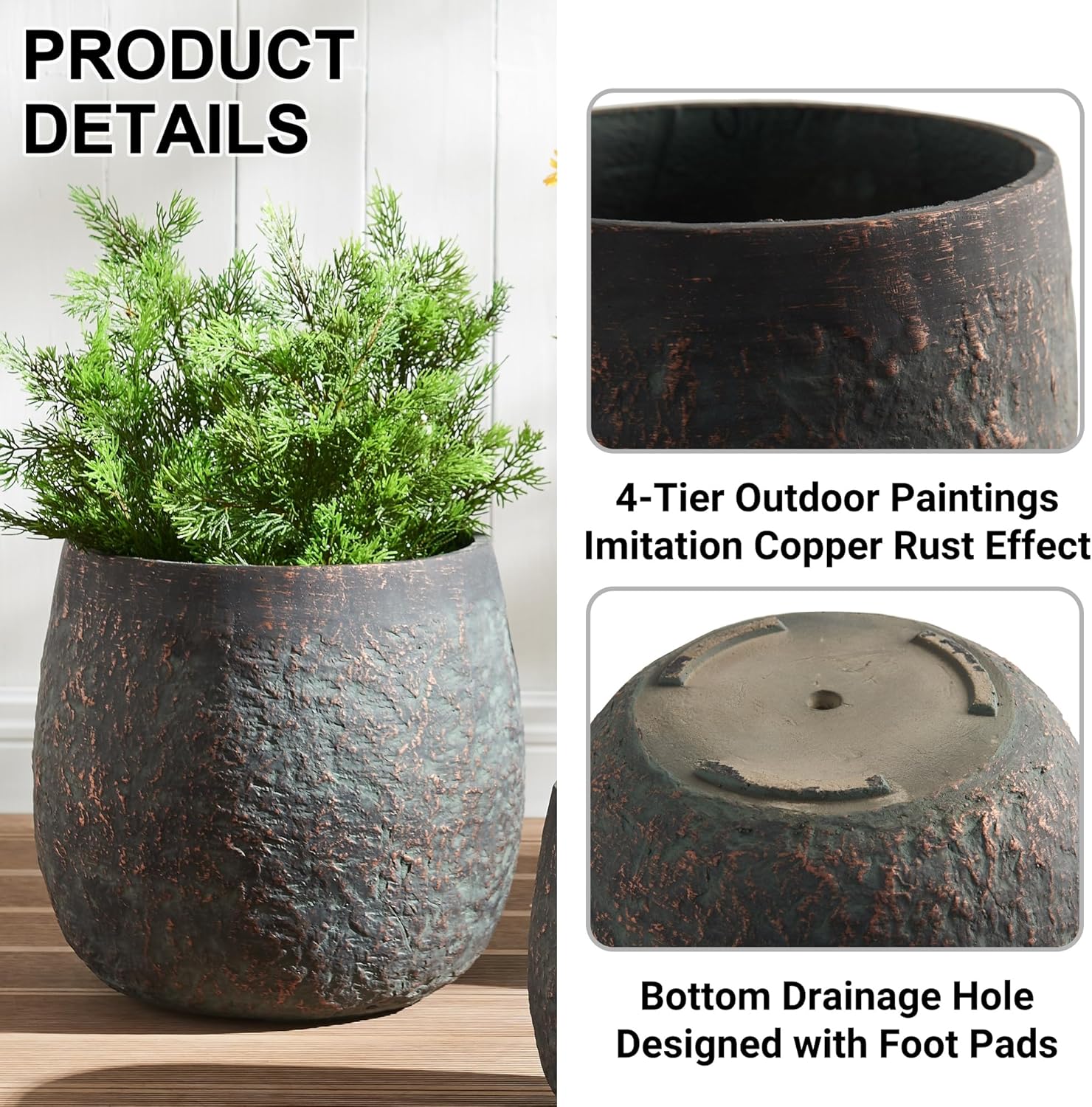 - Hand Painting: Surface is coated with multiple layers of paint, UV resistant, crack resistant, can maintain long-lasting color. Pure handmade paint with multiple colors overlapping, presenting a copper rust colored effect on the surface.