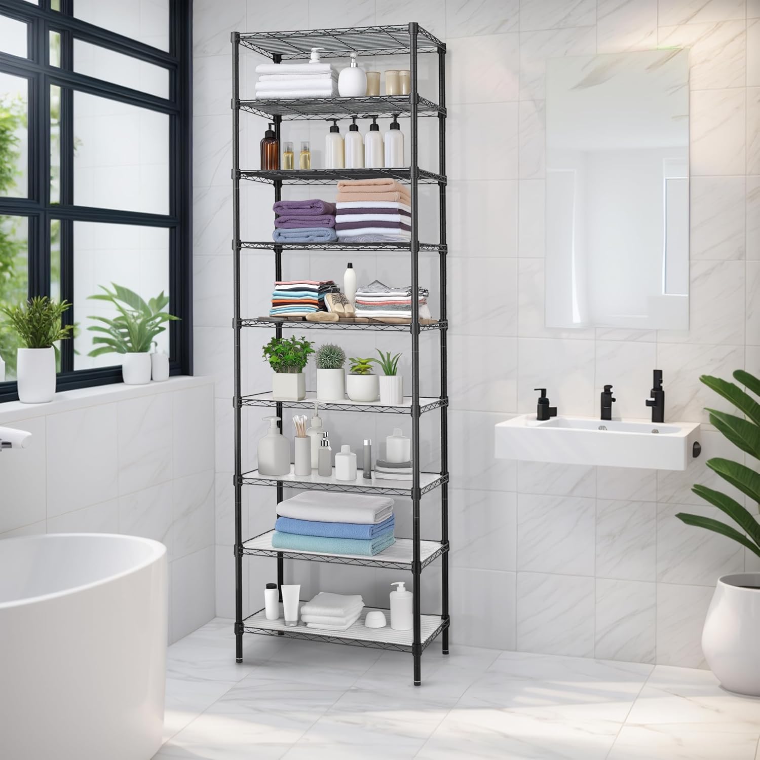 Finnhomy 9-Tier Wire Shelving Unit Adjustable Steel Wire Rack Shelving, 81 Inches Height 9 Shelves Metal Storage Rack, Pantry Shelves for Storage with PE mat, NSF Certified, Black