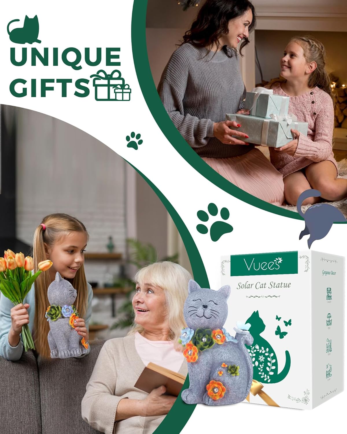 - UNIQUE GIFTS IDEA: Surprise the gardening enthusiasts in your life with a unique and enchanting gift. Vuees Solar Cat Statue makes for a heartwarming housewarming present, perfect for moms and grandmas who cherish their outdoor spaces.