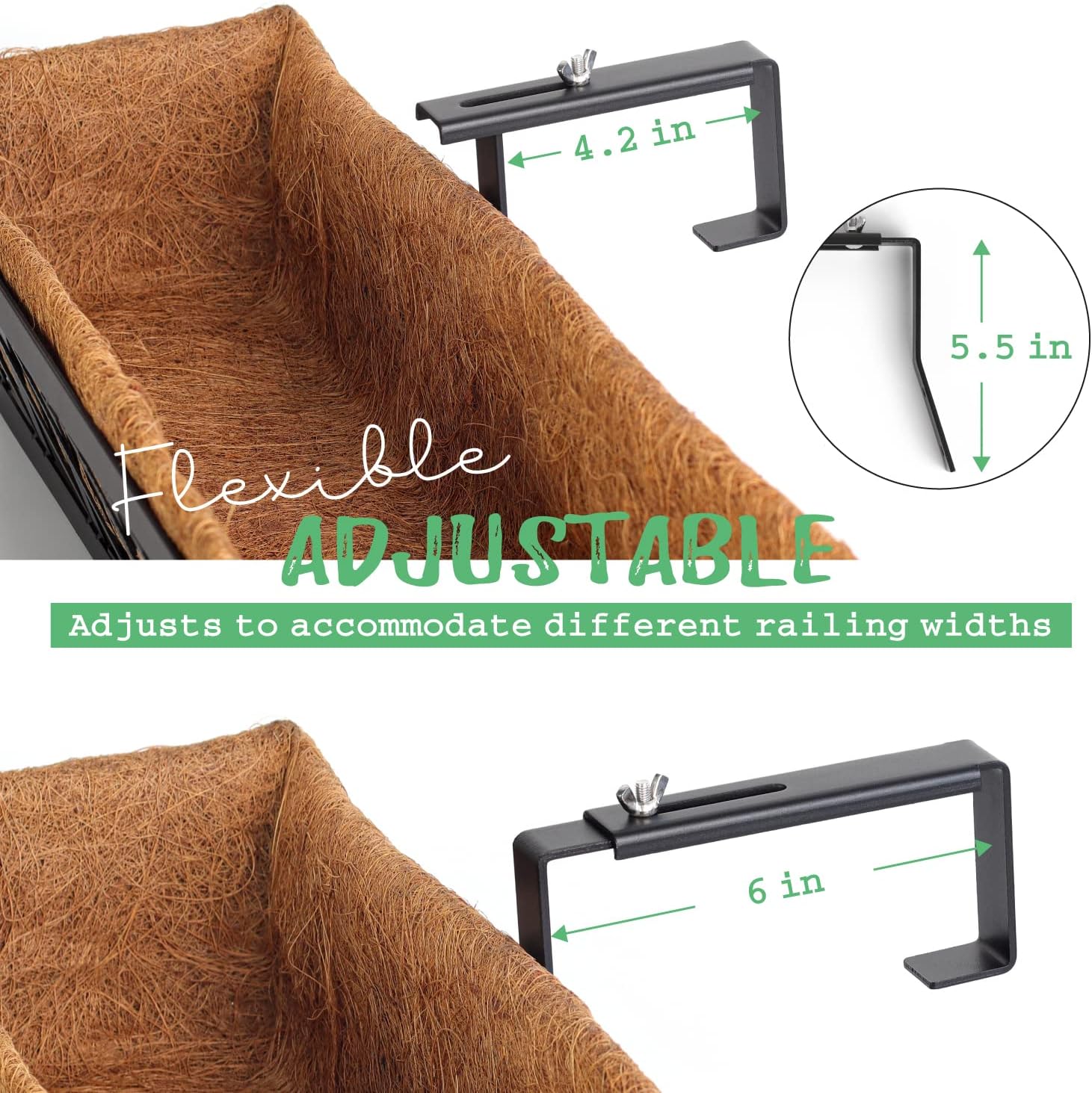 - COVINIENCE TO MOVE AND HANG: for more flexibility, the brackets are adjustable, enabling them to fit on most 2-6 in. flat railings.