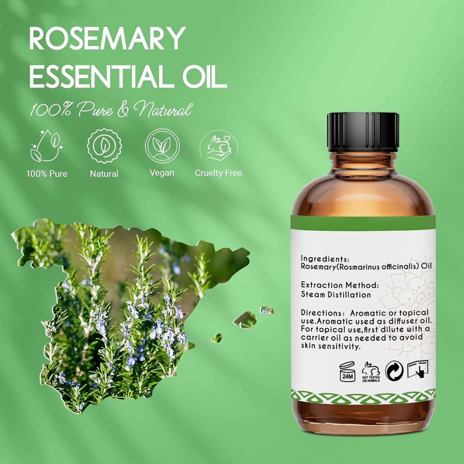 - Pure Rosemary Oil: Our Rosemary essential oil is steam distilled from high-quality rosemary leaves, it is free from any synthetic additives or other impurities, ensuring that you get the best possible product.