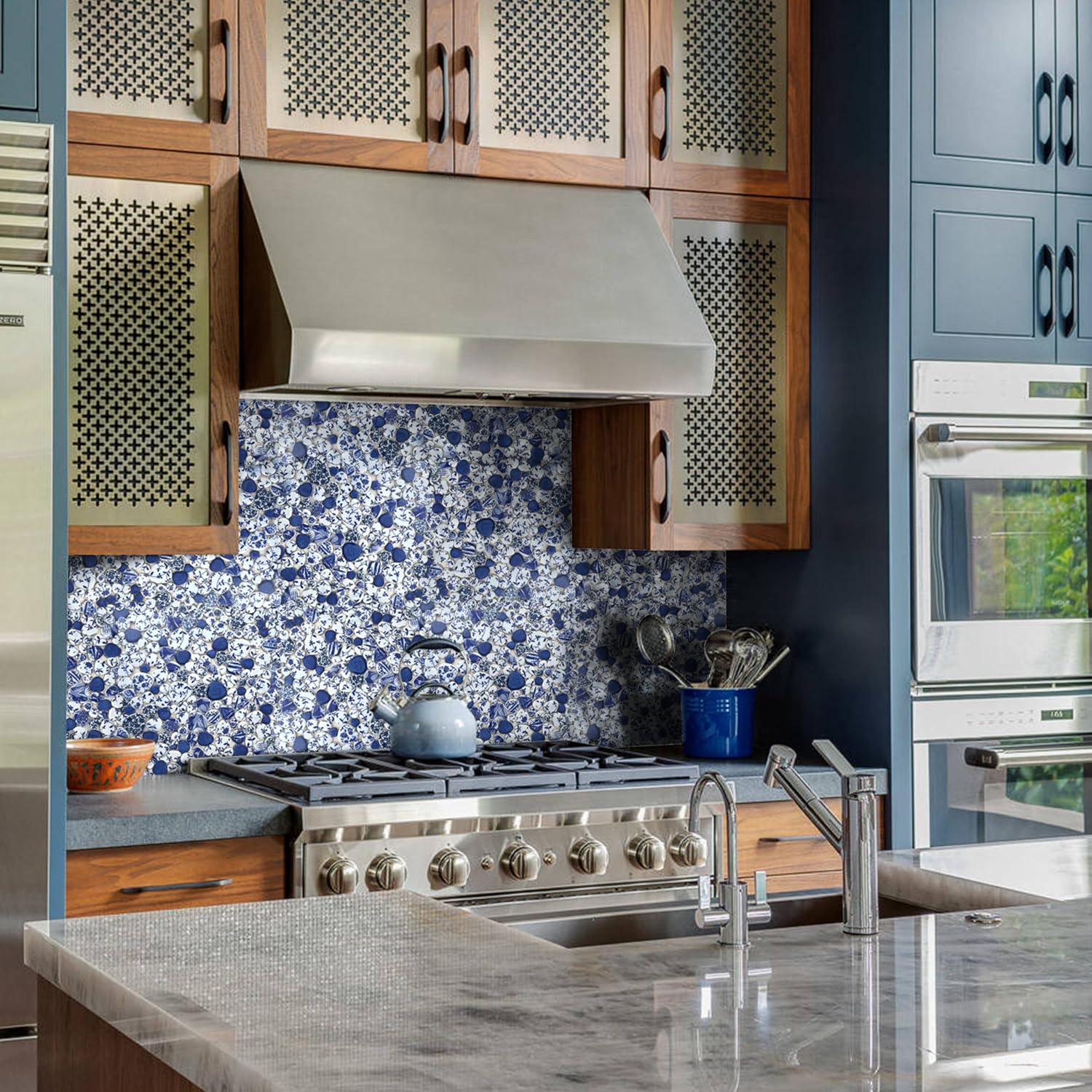 - Mesh back Tile: The blue & white pebble mosaics are mesh mounted. It is easy for cutting the mesh for any DIY project.