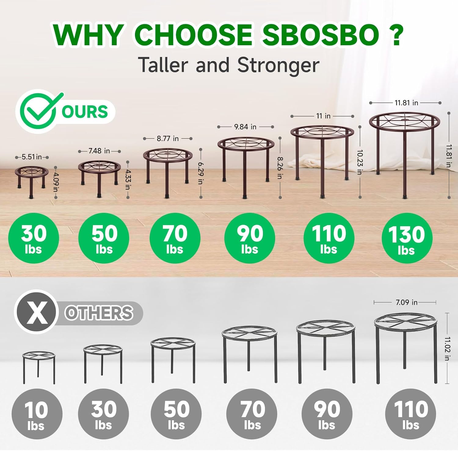 - Rust-proofing and Floor Protection: The surface of the flower stand is coated with an anti-rust coating, protect it against rust and corrosion even in a humid environment, greatly extending the service life of the planting stands. In addition, to prevent the bottom of the stand from scratching or wearing the floor, a anti-slip protective pad is installed at the bottom of the stand. This metal plant stand is suitable for indoor home and balcony