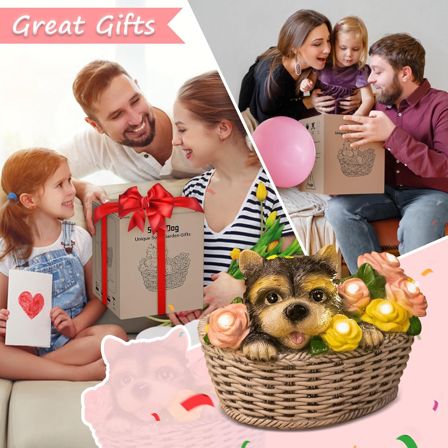 HOMEIMPRO Solar Garden Decor Dog Garden Gifts for Women, Yorkie Puppy Lovers Gifts Mothers Day Birthday for Mom Grandma,Outdoor Statues Solar Lights, 8LED Lights Balcony Yard Decor, Patio