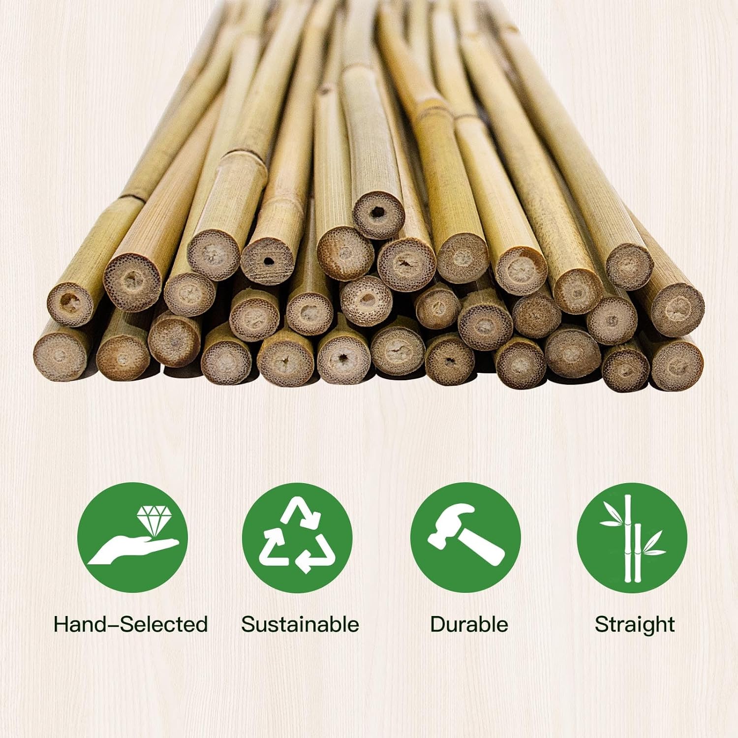 - Natural Bamboo Stakes: Our plant stakes are made of natural bamboo and carefully selected for strong quality and durability. All handmade, reusable. An eco-friendly alternative to plastic stakes. Bamboo stakes are a must-have for any gardener